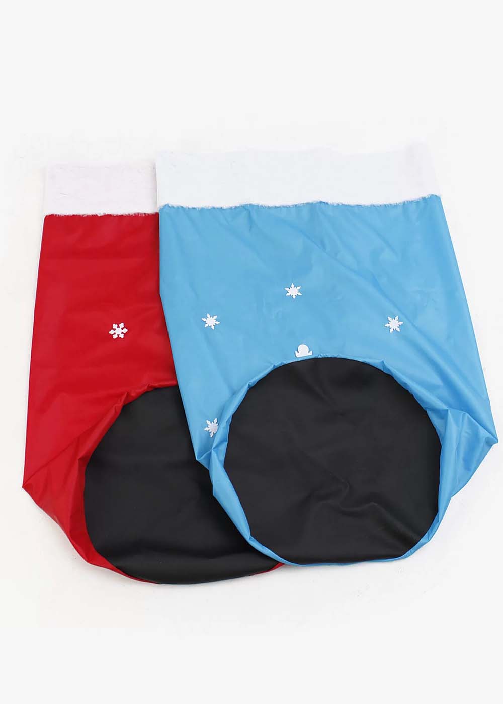 Реквизит аниматора Мешки для прыжков Новогодние предлагают веселые игры и развлечения на празднике! Изготовлены из прочного материала: оксфорда и ковролина. В комплект входят два мешка: синий и красный цвета. Размер каждого мешка: длина – 97 см, диаметр – 45 см, ширина верха (меховой части) в сложенном виде 100 см. Мешки украшены снежинками из ковролина и имеют опушку из коротковорсового белого меха сверху. Дно мешков выполнено из качественной экокожи.