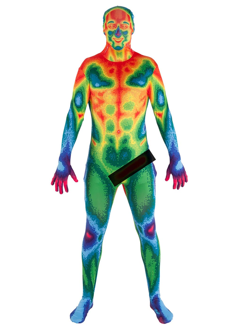 Инфракрасный морфсьют с двусторонней молнией по центру спины, начиная с пояса и заканчивая вершиной головы. Голова, руки и ноги полностью закрыты. Капюшон можно расстегнуть и опустить для свободного обзора.