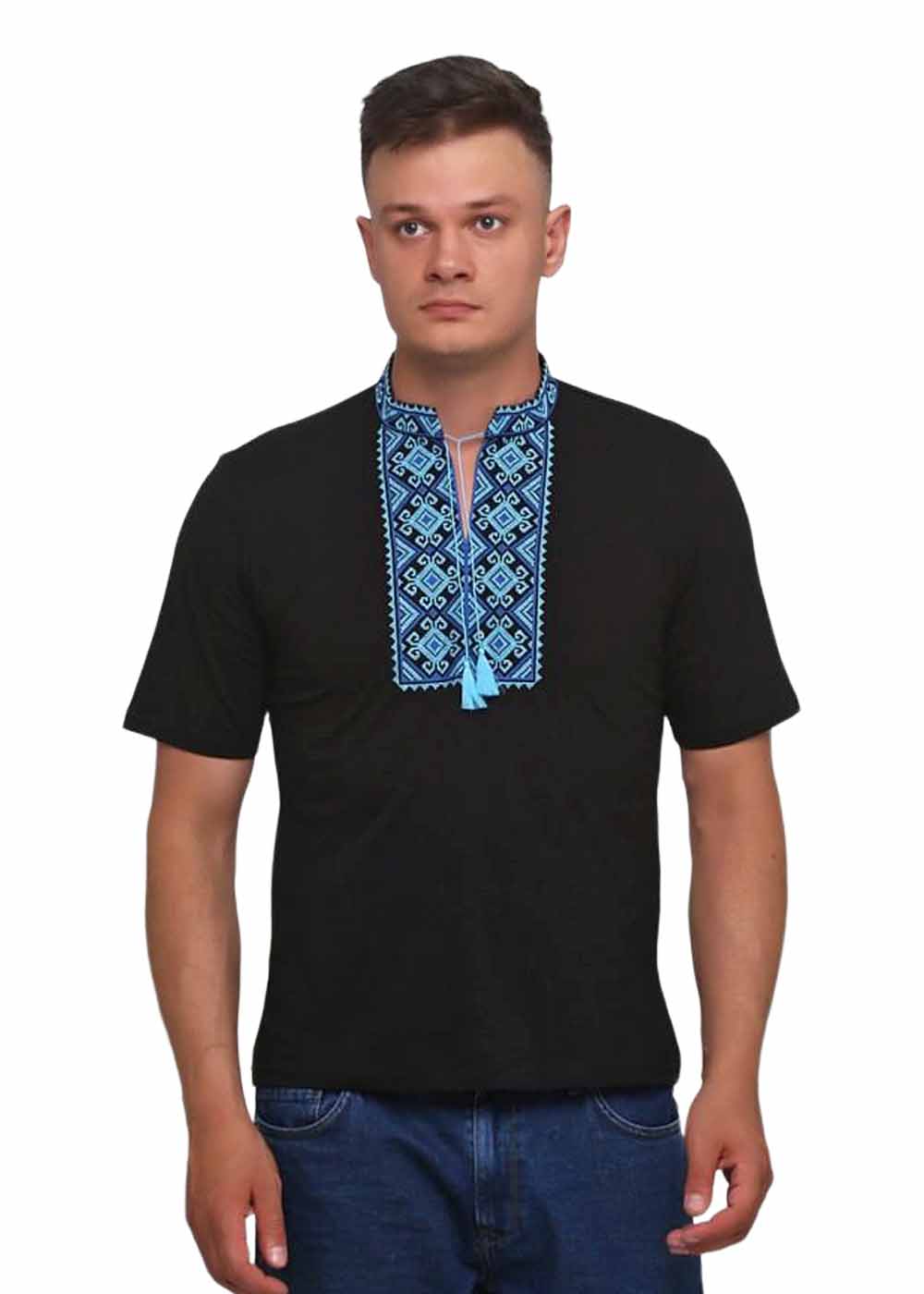 Мужская вышитая футболка чёрная продолжает коллекцию вышитой одежды. Модель выполнена исключительно из комфортного и качественного материала.