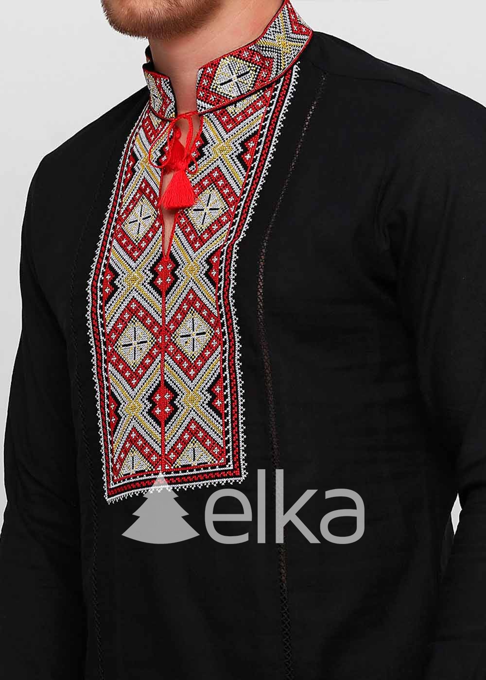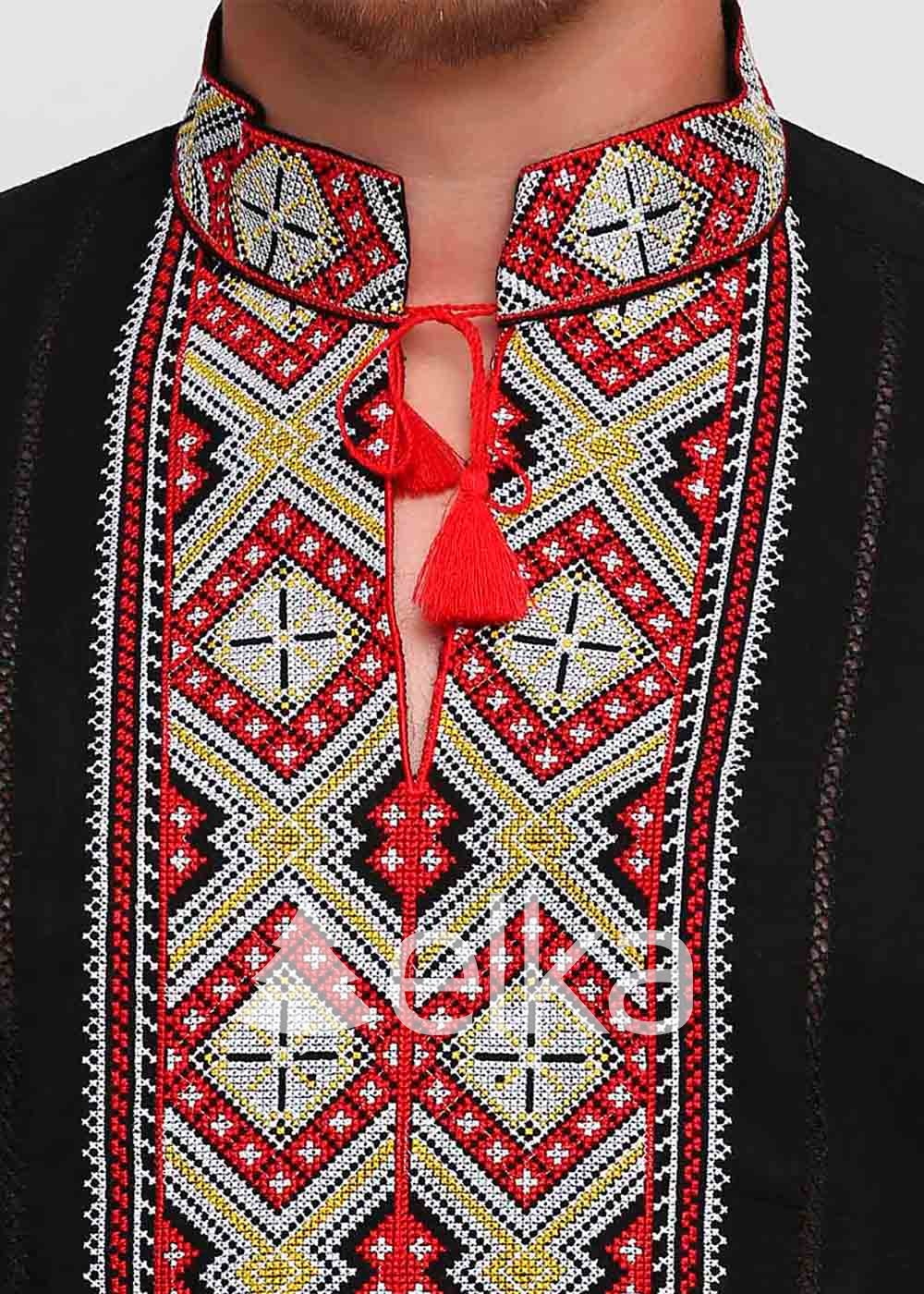 Мужская вышиванка черная Оберег выполнена из высококачественной натуральной ткани.