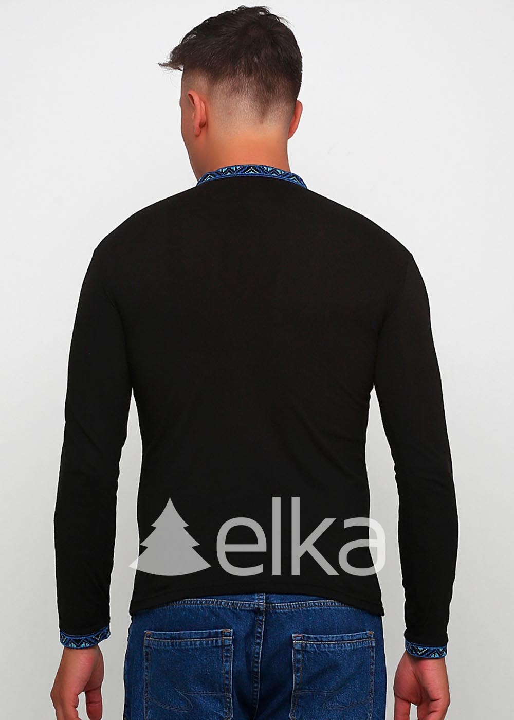 Орнамент на сорочке вышит в технике "крестик", символизирует мужскую энергию и силу. Рубашка приятная к телу, имеет длинный рукав и воротник-стойку, комфортная и не сковывает движений.