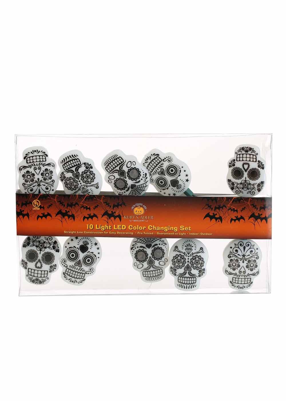 Набор гирлянд День мертвых добавит яркости и атмосферы вашему празднику. Длина гирлянды составляет 350 см, что позволяет легко украсить как внутренние, так и наружные пространства. На цепочке расположены 10 светодиодов, меняющих цвет, каждая лампочка прикрыта крышкой в форме черепа. Гирлянда оснащена подводящим проводом длиной 76 см и расстоянием 31 см между светильниками, что обеспечивает равномерное распределение света.