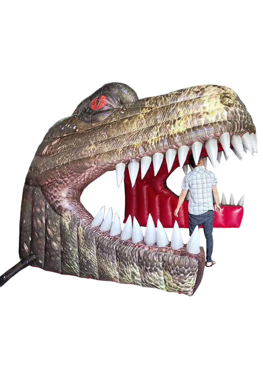 Надувная арка Динозавр представляет собой захватывающий элемент декора, который перенесет вас в мир доисторических времен. Размер составляет 4 метра в высоту. Арка создает впечатляющий туннель в форме рта динозавра. Комплектация включает в себя все необходимое для удобного использования: насос для быстрого надувания, прочные веревки для надежной фиксации и упаковочный мешок для легкой транспортировки и хранения.