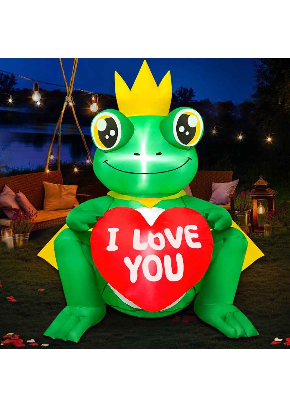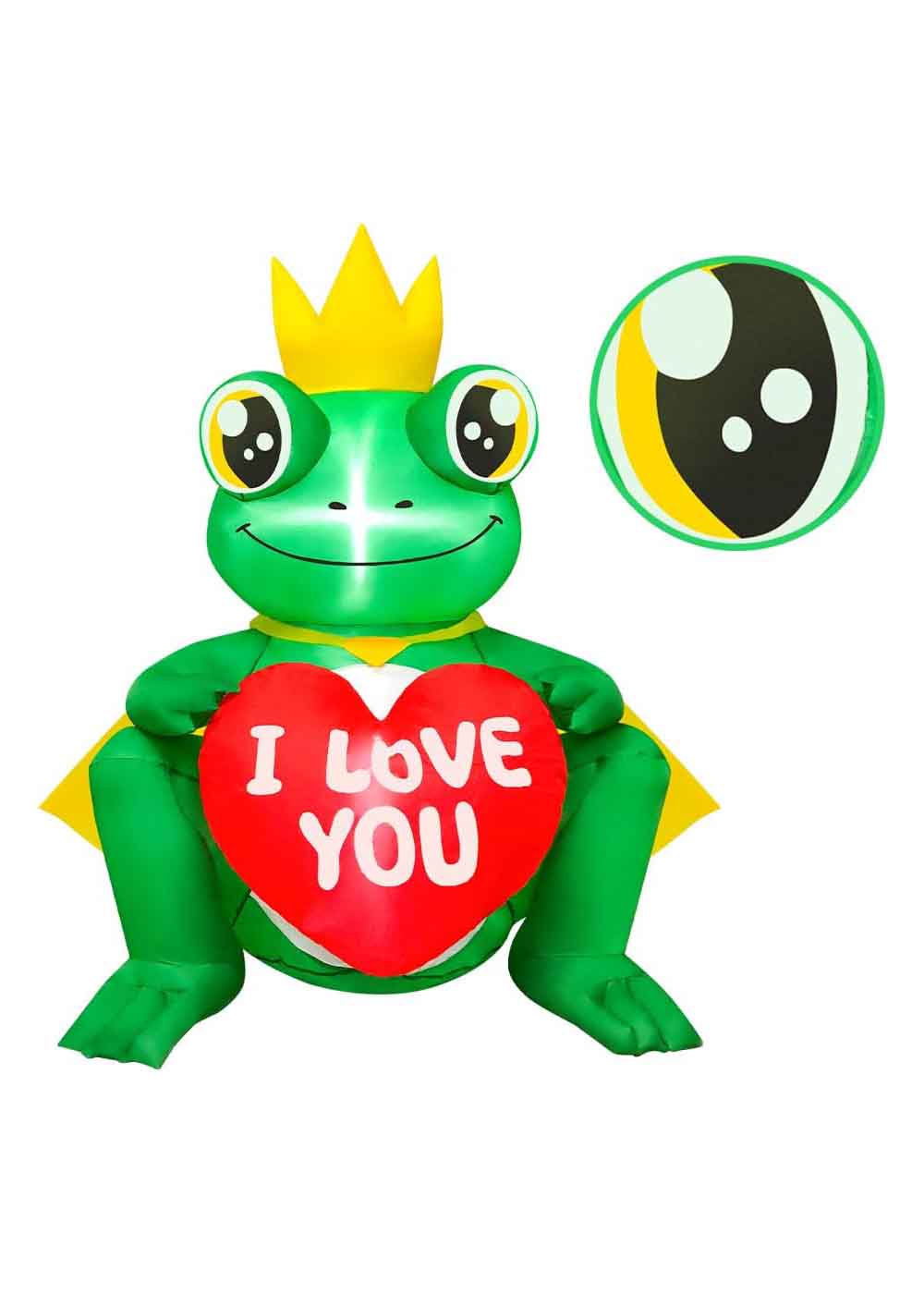 В комплекте вы найдете надувную декорацию принца-лягушки высотой 128 см, а также комплект крепления. Надувается в течение нескольких минут после подключения к электросети. Изготовлен из прочного полиэстера, обеспечивая долговечность и устойчивость к ветру. Идеально подходит для декорирования двора, передних дверей, газонов и других мест как в помещении, так и на улице.