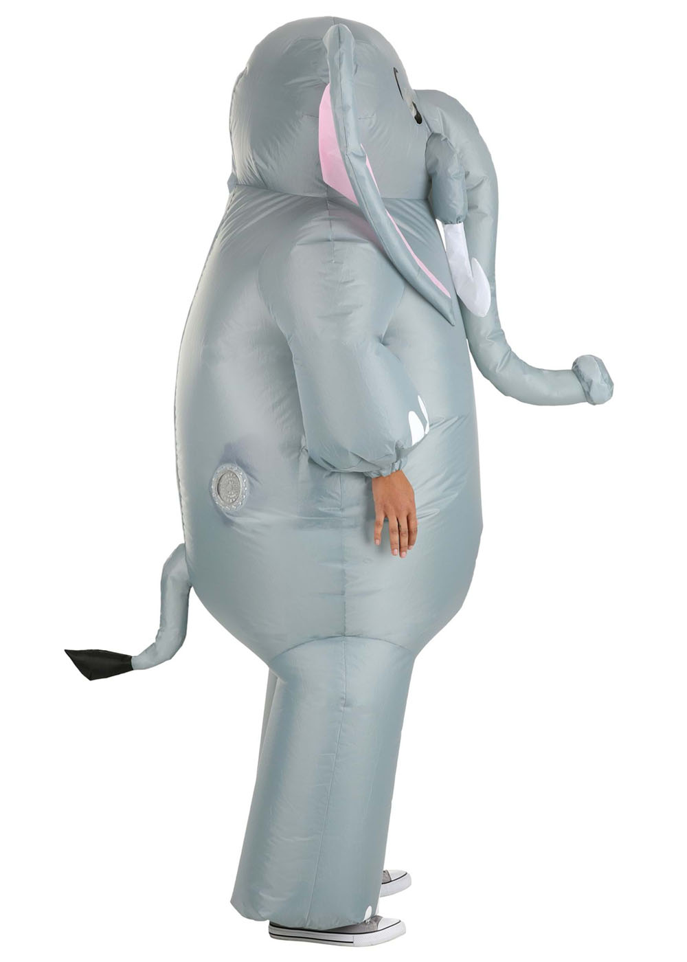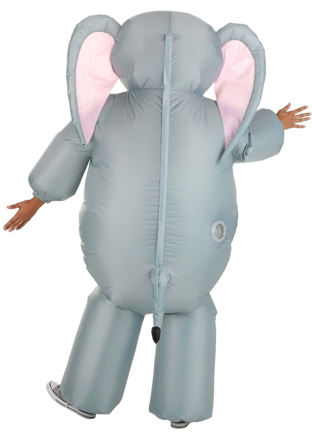 Костюм надувного Слоника с молнией на спине для легкого одевания. Голова полностью закрыта, смотровая зона в глазах костюма. Упругие манжеты на запястьях и щиколотках обеспечивают хорошую посадку. Вентилятор установлен на задней части правого бедра. Батарейный блок помещается в карман внутри костюма или может крепиться на одежду под костюмом. Для открытия отсека для батареек требуется крестовая отвертка (не поставляется). Для работы требуются 4 батарейки типа AA (не поставляется).