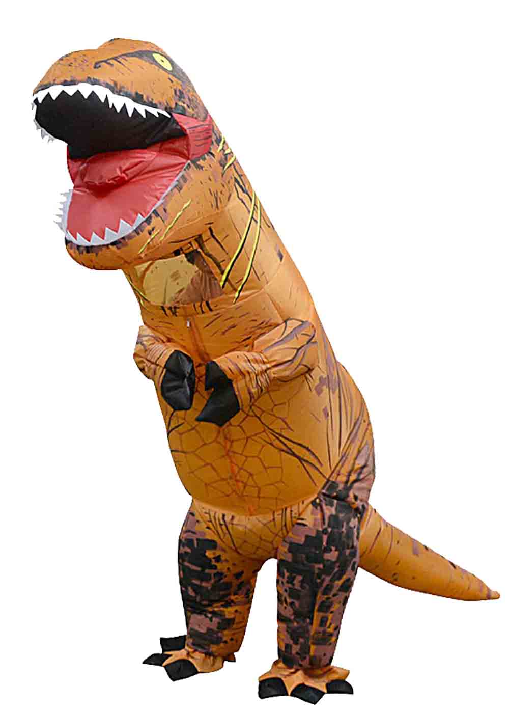 Надувной Костюм Динозавра T-Rex состоит из: комбинезона, перчаток и вентилятора на батарейках. Комбинезон, имеющий форму и маркировку T-Rex, раздувается включенным вентилятором на батарейках. На шее имеется отверстие для лица, что дает возможность видеть. Открытый рот полон зубов. Костюм отлично подойдет для аниматоров. Высота 2,2 метра.