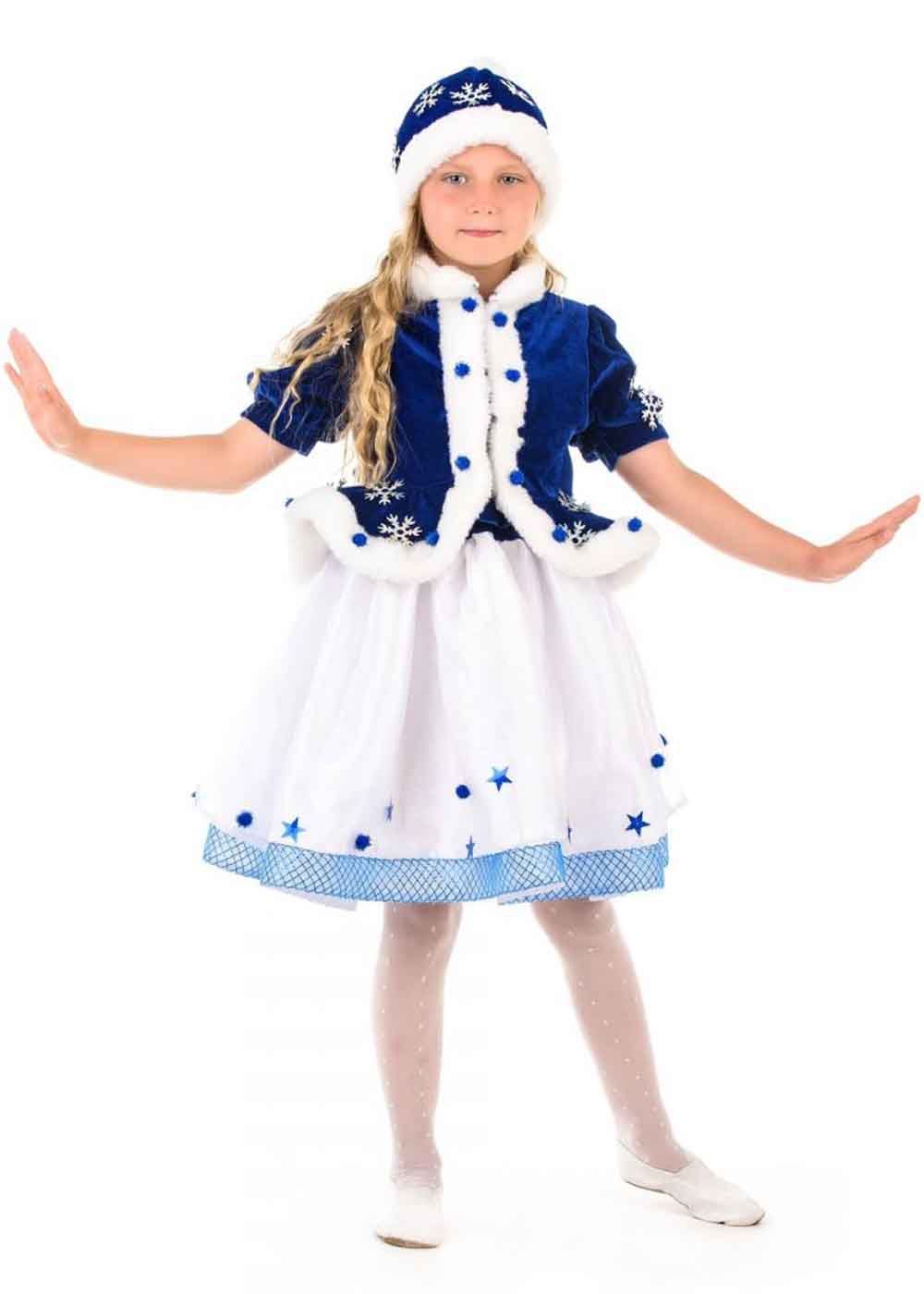 Превратите вашу девочку в настоящую зимнюю сказочную героиню с костюмом "Снегурочки Морозко"! В комплект входят кофта, юбка и шапка, создавая полный и очаровательный образ Снегурочки. Шапка украшена сверкающими элементами, добавляющими костюму праздничности и волшебства. Этот костюм идеально подходит для новогодних мероприятий и тематических вечеринок. Выполнен из высококачественных материалов: велюра, органзы, фатина и креп-сатина, что обеспечивает комфорт и элегантность.