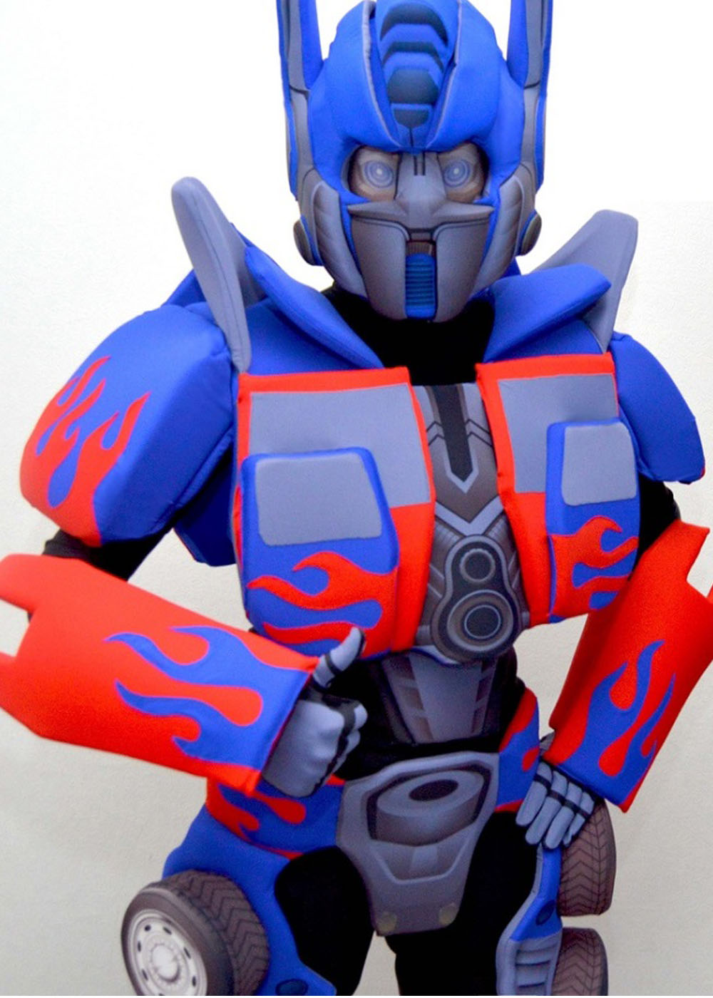 Ростовой костюм трансформера Оптимус Прайм — это воплощение мощи и силы. Головной убор представляет собой высокий шлем. Жилет с контрастными вставками добавляет объема и динамики образу. Накладки на руки и перчатки, с имитацией механизмов, придают реализма и завершенности костюму. В этом облике каждый шаг аниматора наполнен величием и решимостью, привлекая внимание и вдохновляя окружающих на подвиги и победы.