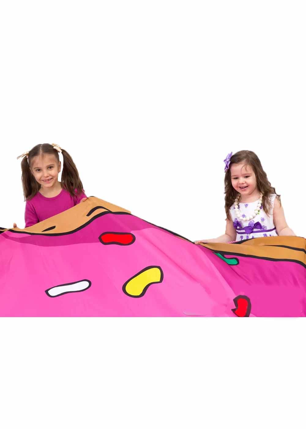Реквизит Парашют Пончик Кэнди это креативный элемент. Парашют моделирует форму огромного пончика, а также используется для игр и развлечений. Характеристики парашюта: диаметр парашюта составляет 2,70 метра, что создает впечатление огромного пончика, диаметр внутреннего отверстия равен 52 сантиметрам.