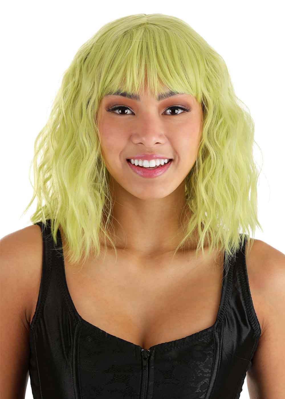 Светло-зеленый парик — идеальный выбор для тех, кто хочет добавить яркости и оригинальности своему образу. Парик представляет собой окружность шапки парика в диапазоне размеров от 46 - 66 см. Шапочка для парика оборудована резинкой по заднему краю, обеспечивающей плотное и комфортное прилегание к голове. Укладка парика выполнена без пробора, с челкой и короткими волнами, что придает живой и яркий вид.