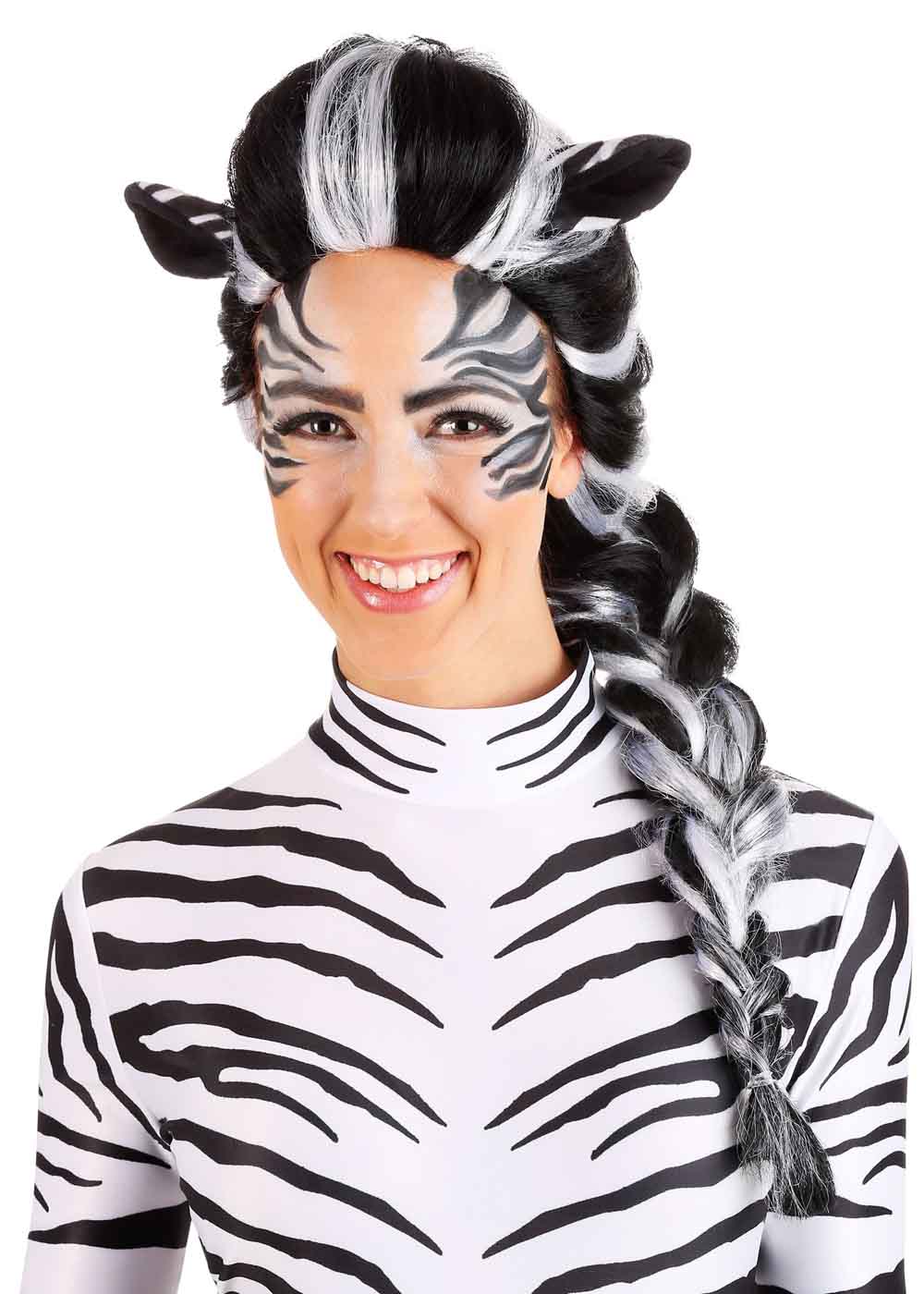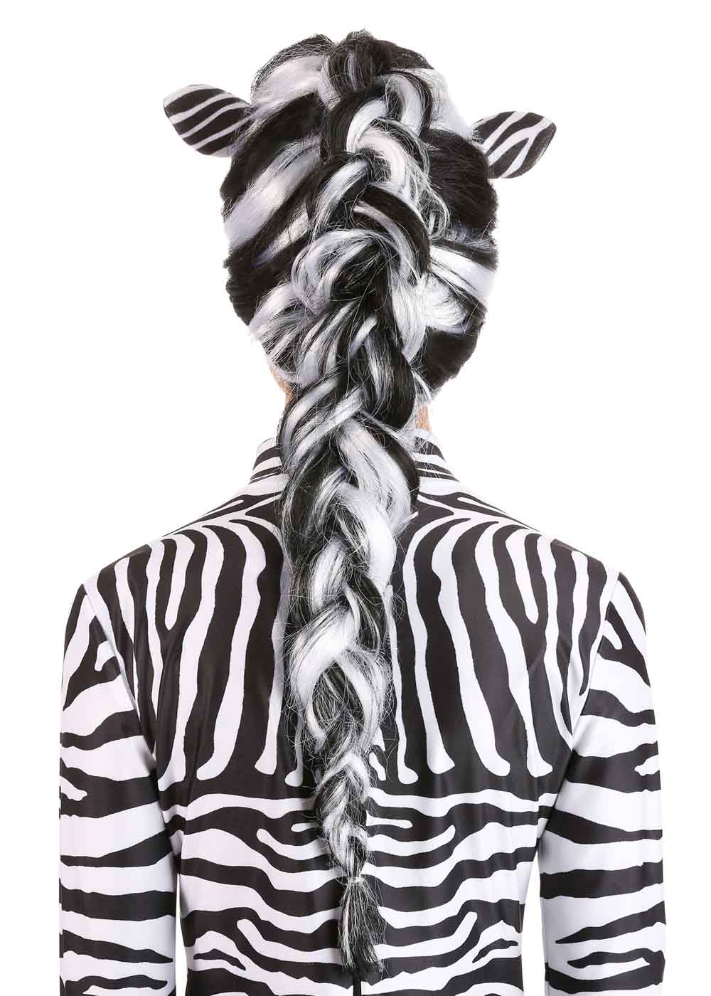 Парик зебры - настоящий воплощенный образ стиля и игривости. Сделан из канекалона для комфортного ношения и имеет окружность шапки парика от 46 - 66 см, что гарантирует подходящий размер для разных голов. Парик уложен и заплетен в замечательную косу, где черно-белые пряди переплетаются вдоль всей длины, создавая эффектные контрасты. Коса достигает плеч, придавая образу элегантности и игривости одновременно. И чтобы подчеркнуть полноту образа, парик дополнен черно-белыми ушами, выглядывающими сбоку.