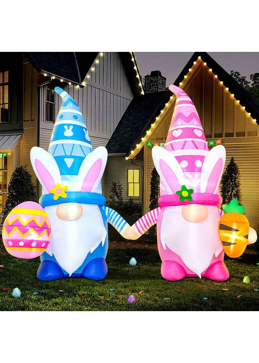 Пасхальные тролли-декорация включают надувную фигуру гномов высотой от 180 до 210 сантиметров с украшениями в виде пасхального яйца и морковки, а также комплект крепежных элементов для закрепления. Уникальный дизайн, яркие светодиодные огни привлекут внимание гостей и детей. Изготовлены из высокопрочного полиэстера и оснащены мощным насосом для быстрого надува. Идеально подходят для декорирования интерьера, патио, двора и других мест как в помещении, так и на открытом воздухе, создавая праздничную атмосферу на Пасху.
