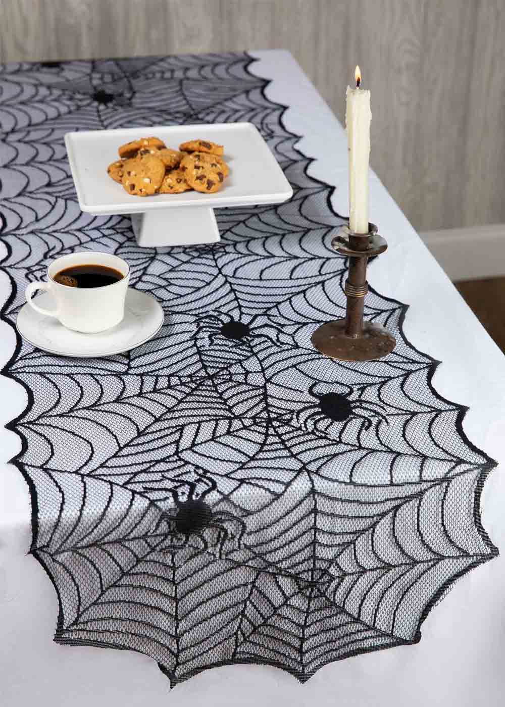 Дорожка для стола Черная паутина станет изысканным дополнением вашего праздничного декора. Длина дорожки составляет 183 см, ширина — 46 см. Дорожка украшена вязаным узором в виде паутины и ползающих пауков, что добавляет загадочной атмосферы. Дорожка отлично подойдет для украшения стола на Хэллоуин или любые другие тематические вечеринки, создавая незабываемое впечатление у ваших гостей.