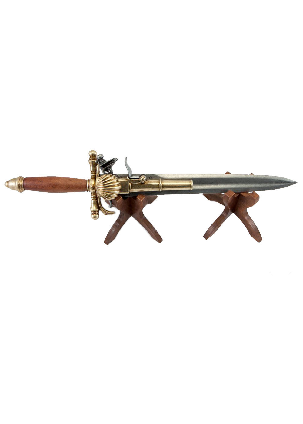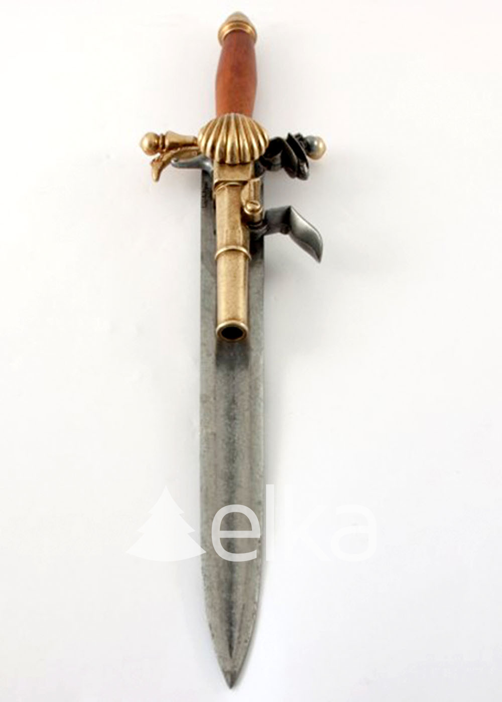 Пистолет-кинжал, Франция XVIII в. испанского производства. Сувенирное оружие с металлической частью из цинкового сплава ЗАМАК 5 и дерева украшено гравировкой.