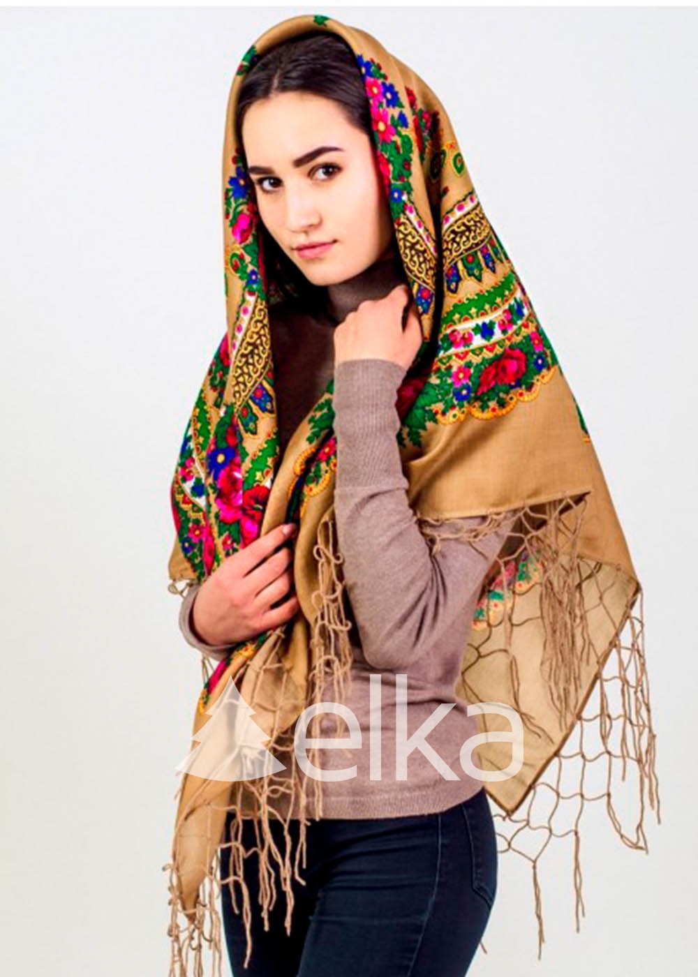 Платок украинский кофейный продолжает тематику народных аксессуаров.