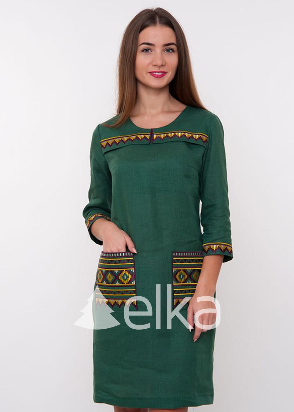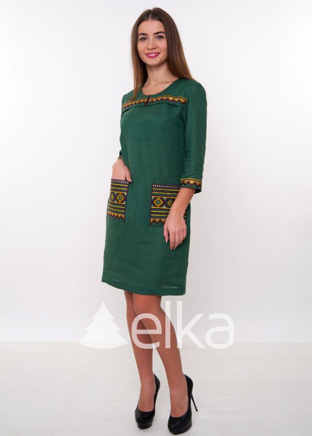 Платье вышиванка темно-зеленое продолжает тематику Вышиванок.