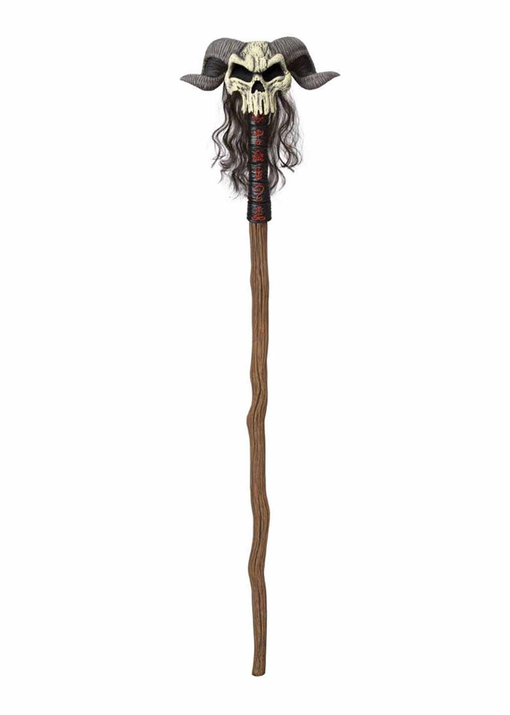 Посох волшебника, излучающее мудрость и магическую силу. Изготовленный из литого пластика и окрашенный так, чтобы имитировать текстуру дерева, этот посох создает впечатление древности и таинственности. Посох состоит из двух частей, образуя единое целое. На вершине посоха располагается череп. На спине черепа прикреплены волосы, придающие дополнительную живость и реализм.