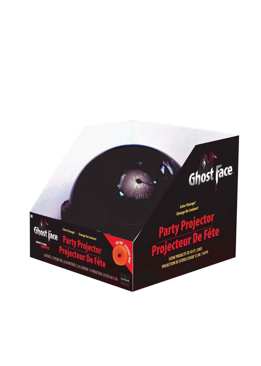 Проектор лица призрака - портативное устройство, созданное специально для вечеринок и тематических мероприятий. С помощью проектора вы можете добавить загадочную атмосферу в любое помещение. Для работы требуются 3 батарейки (в комплект входят демонстрационные батарейки). Проектор изменяет цвет и проецирует устрашающее изображение лица призрака на ближайшие поверхности, создавая неповторимую обстановку на расстоянии до 304 см.