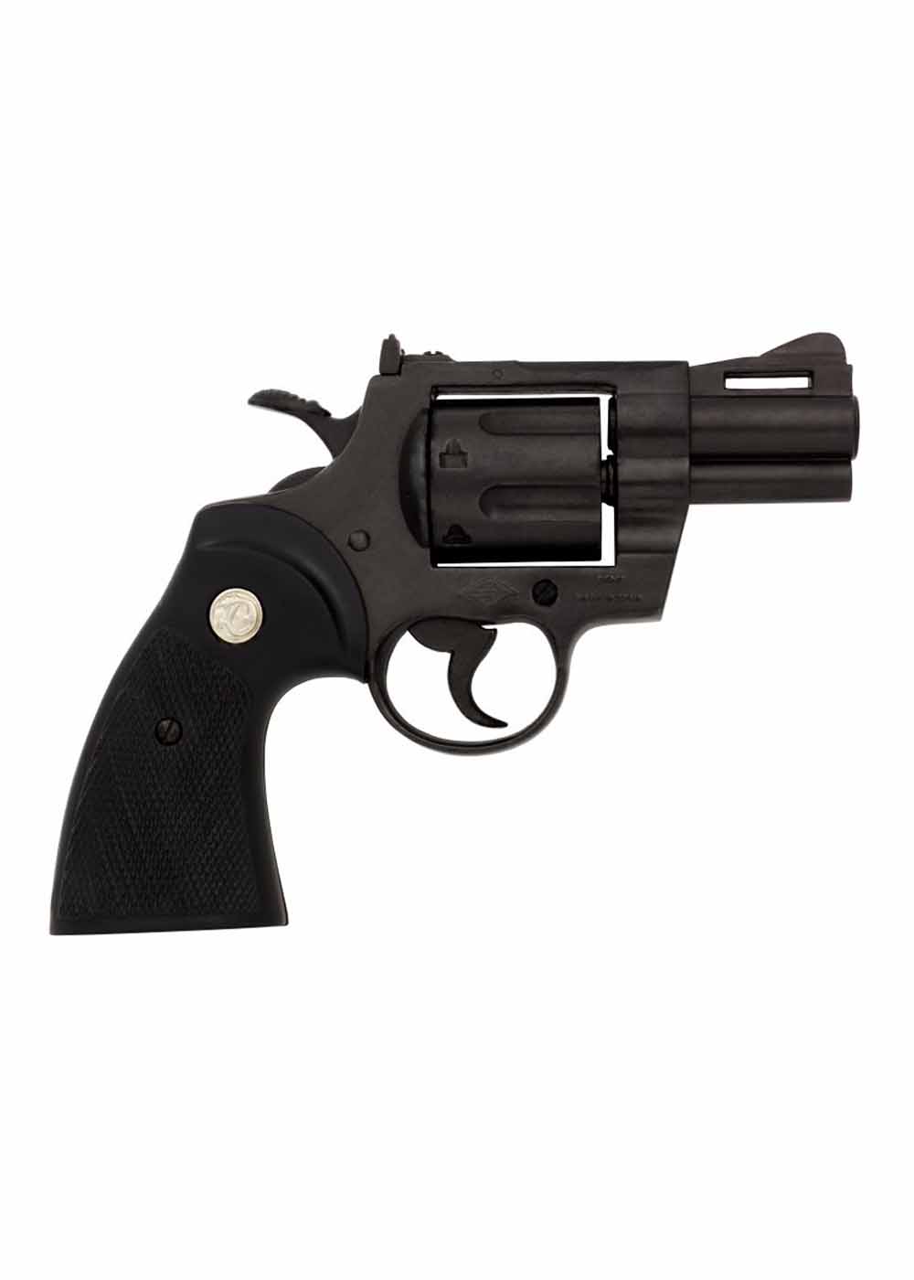 Это воспроизведение револьвера, изготовленного из металла с пластиковыми рукоятками, с имитацией механизма зарядки и стрельбы, а также с вращающимся барабаном. Python - это револьвер двойного действия, калиброванный под мощный патрон .357 Magnum. Также известен как "Combat Magnum". Первоначально он был представлен в 1955 году и был нацелен на сегмент роскошных револьверов. Он признан своей точностью, плавностью хода и надежной конструкцией.