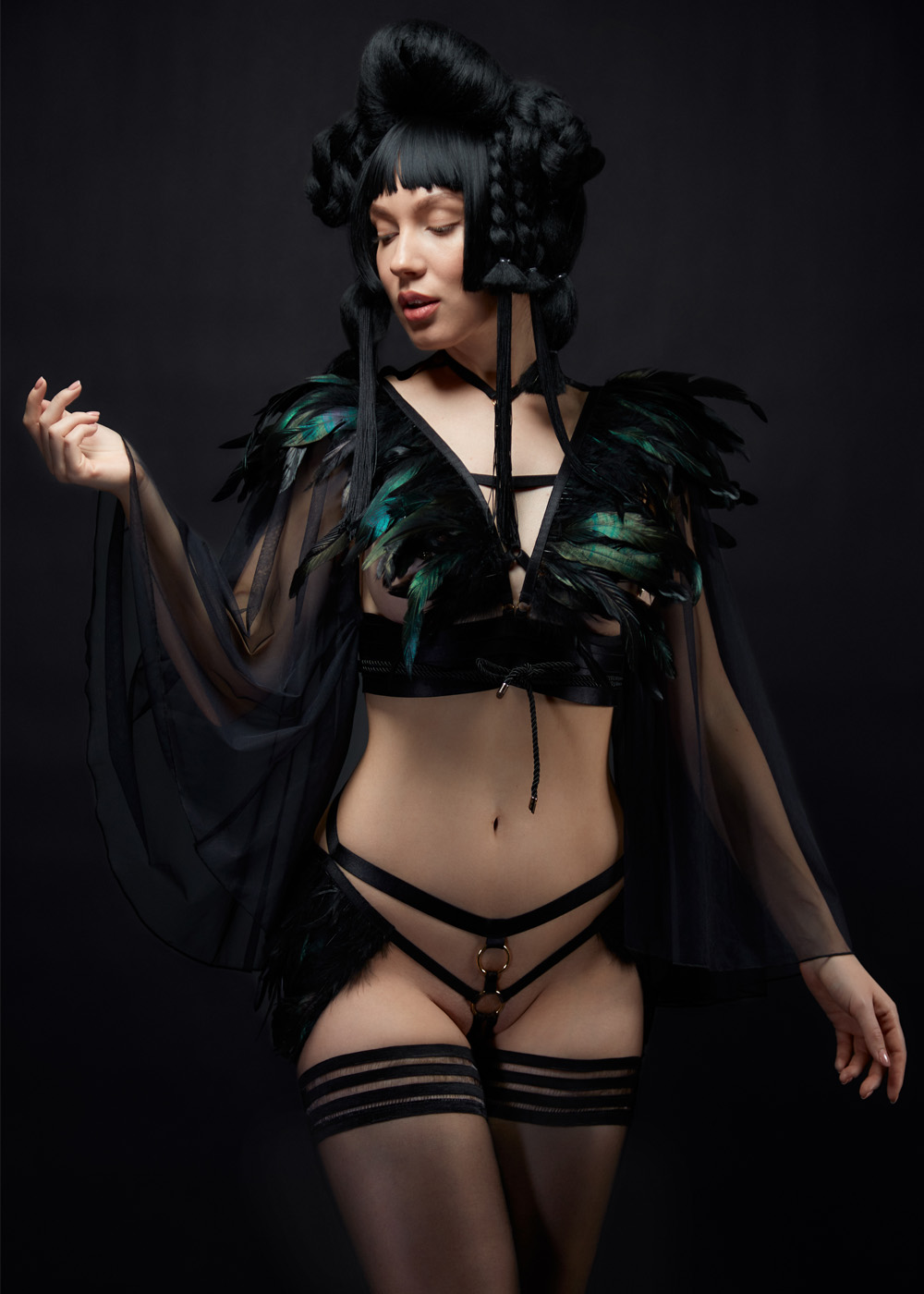 Освойте искусство соблазна с костюмом Гейши. Элегантный бюстгальтер с изысканными рукавами и красивым поясом под грудью придадут вашему облику восточную изысканность. Дополнительно в комплекте вы найдете трусики, добавляющие визуальный интерес и эротический шарм вашему образу.