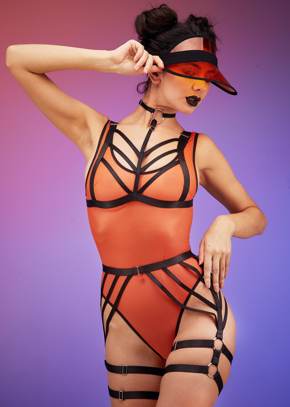 Погрузитесь в мир красок и страсти с ролевым костюмом Rainbow. Этот эротический наряд состоит из прозрачного боди из сетки, дополненного стрепами черного цвета, которые создают уникальный и завораживающий узор на вашем теле. Боди обтягивает фигуру, выгодно подчеркивая все ее изгибы, а черные стрепы добавляют нотку загадочности и сексуальности. Этот костюм идеально подходит для тех, кто желает проявить свою смелость и страсть в интимных отношениях.