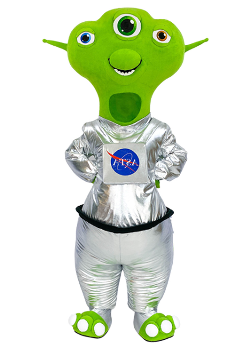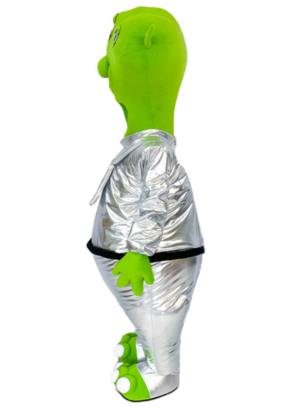 Ростовой костюм Инопланетянина создан для удивления и загадочности. Голова пришельца имеет поролоновую основу, покрытую мягким флисом, с тканевыми глазами и смотровой областью в шее для комфортного ношения. Основная часть костюма инопланетянина представлена комбинезоном с вшитым объемным жилетом, который придает образу особую атмосферу и объемность. Костюм дополняют перчатки и обувь с прорезиненной подошвой для удобства передвижения.