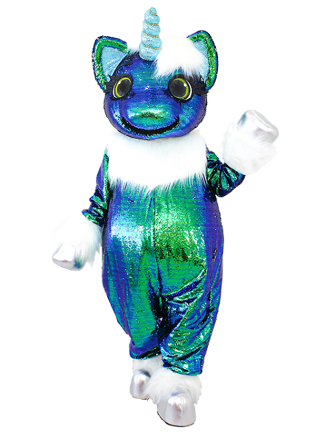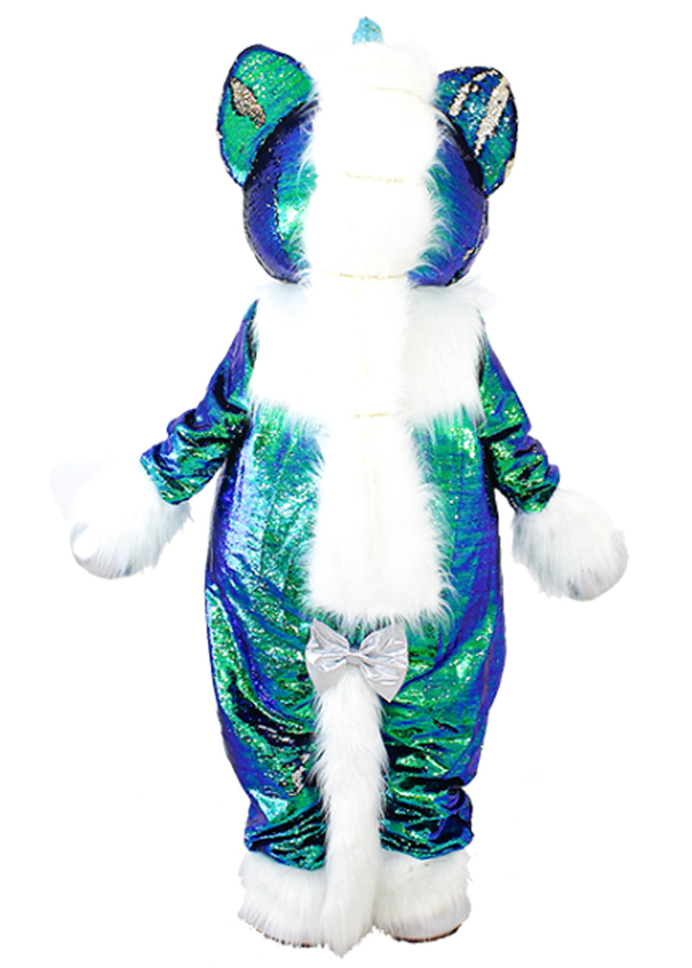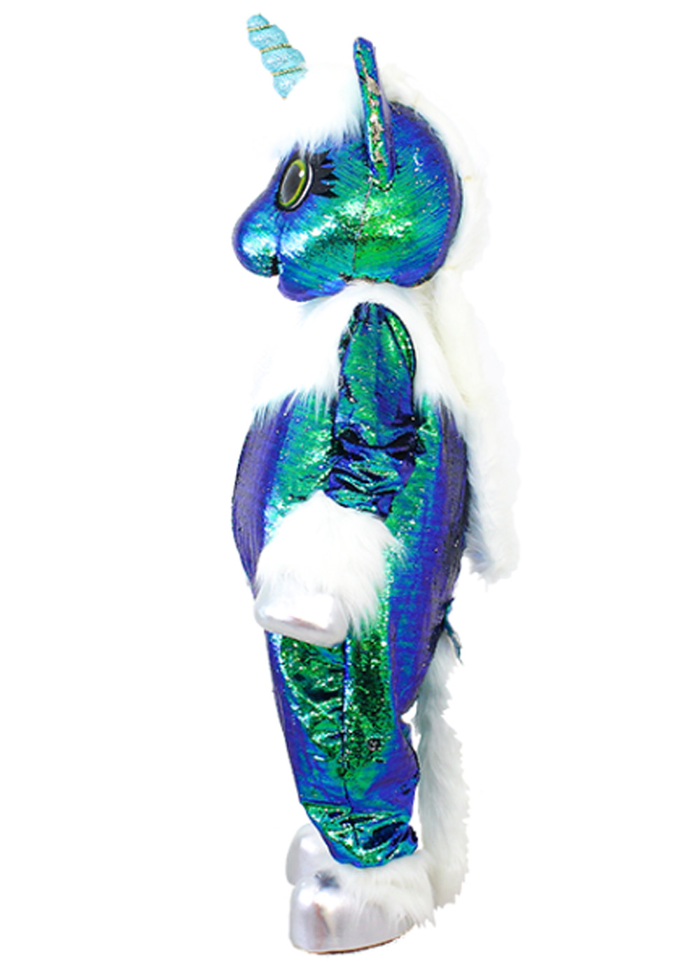 Ростовая кукла Единорожка Изумруд представляет собой волшебное воплощение красоты и утонченности! Голова ростовой куклы единорога с поролоновым каркасом, изолоновыми вставками, обтянута пайетками, с милыми глазами. Костюм имеет дополнительные вентиляционные отверстия во рту. Туловище представляет собой комбинезон из пайеток, с жилетом для создания объема и реалистичности. В комплекте пара перчаток и пара обуви.