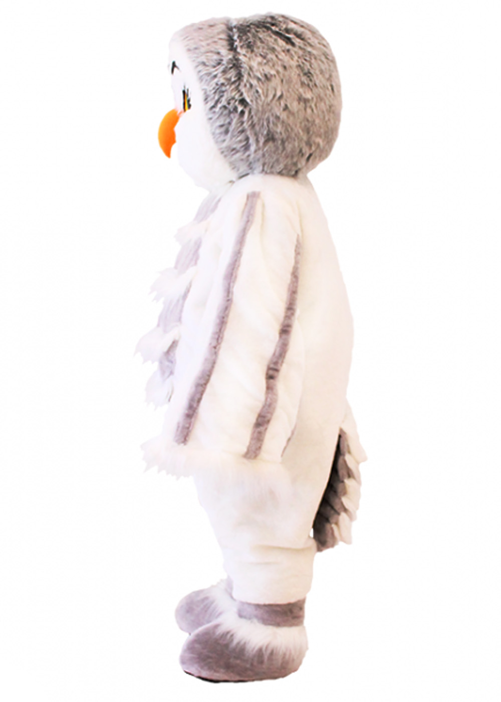 Ростовой костюм Полярная сова представляет собой идеальное сочетание комфорта и стиля. Голова костюма оснащена поролоновой основой, обтянутой мехом, сетчатые глаза для лучшей видимости. Смотровая область расположена в глазах. Тело костюма представляет собой комбинезон из меха, дополненный объемным жилетом для дополнительного объема. В комплект также входят удобная обувь с прорезиненной подошвой.
