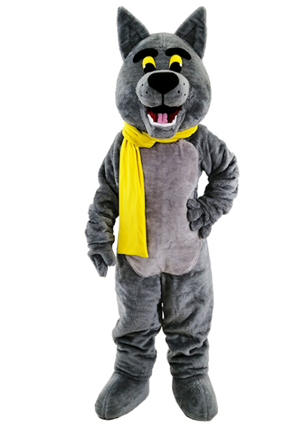 Эта ростовая кукла Волка с поролоновым каркасом и вставками, обтянутыми мягким серым мехом, создана для выступлений и развлечений. Её лицо оживлено тканевыми глазами, а смотровая область, расположенная в широко открытом рту, обеспечивает хорошую видимость для актёра, находящегося внутри. У волка нет дополнительных вентиляционных отверстий, что подчеркивает аккуратность и безопасность конструкции. Комбинезон из меха, дополненный парой перчаток и обувью на поролоновом каркасе, делает образ полноценным и готовым к любым праздничным мероприятиям.