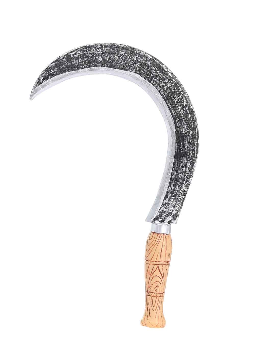 Игрушечный ручной серп, это увлекательный атрибут. Серп изготовлен из прочного пластика, который отлит и окрашен таким образом, чтобы имитировать текстуру и оттенки дерева и металла. Это создает впечатление настоящего, старинного инструмента. Длиной в 36 сантиметров, этот игрушечный ручной серп удобно держать в руке.