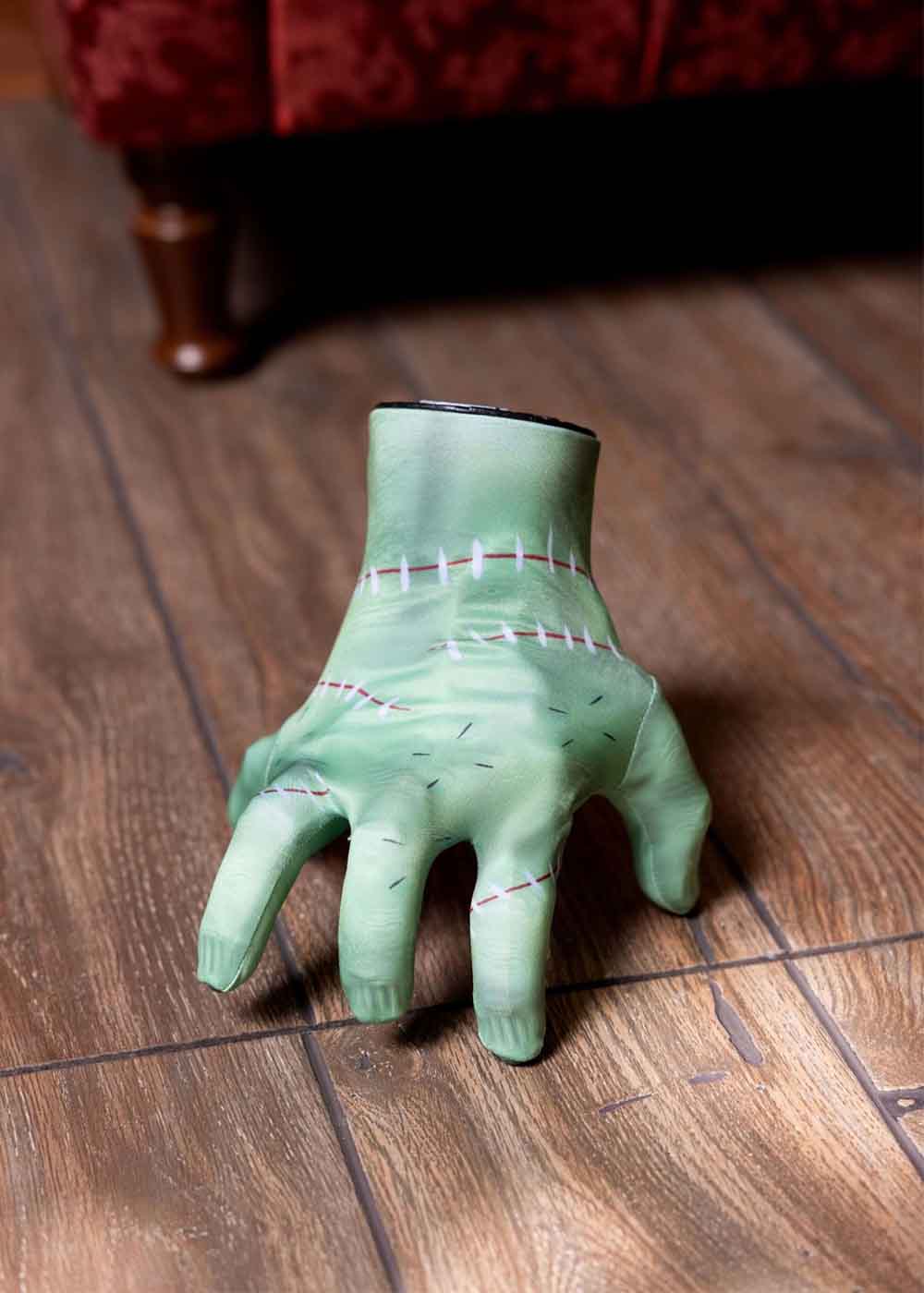 Подвижная декорация Рука Венздей идеально подойдет для дополнения вашего Хэллоуинского интерьера. Пластиковая рука, активируемая звуком, издает жуткий шум и двигается, добавляя пугающей атмосферы. Рука оснащена переключателем включения/выключения для удобства использования. Для работы требуются 3 батарейки (в комплект входят демонстрационные батарейки). Высота декорации составляет 19 см.