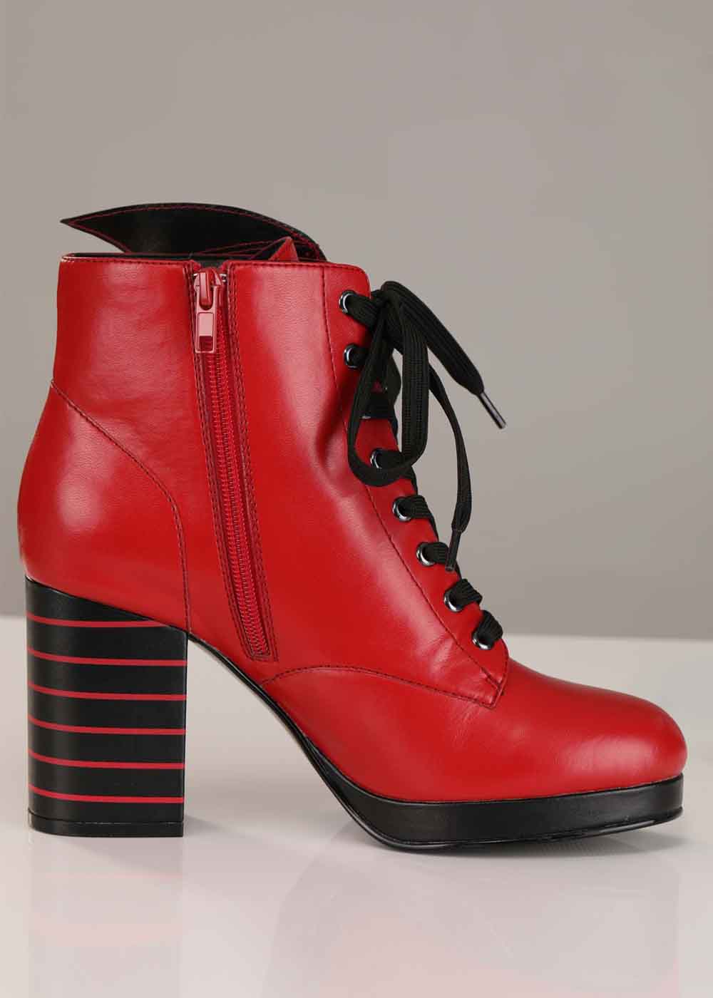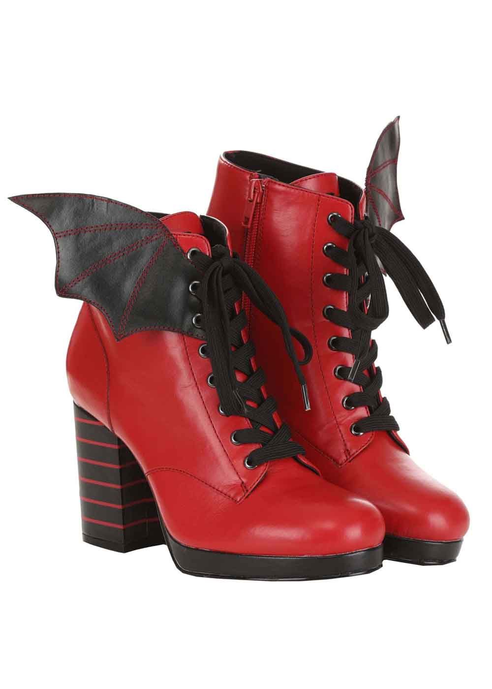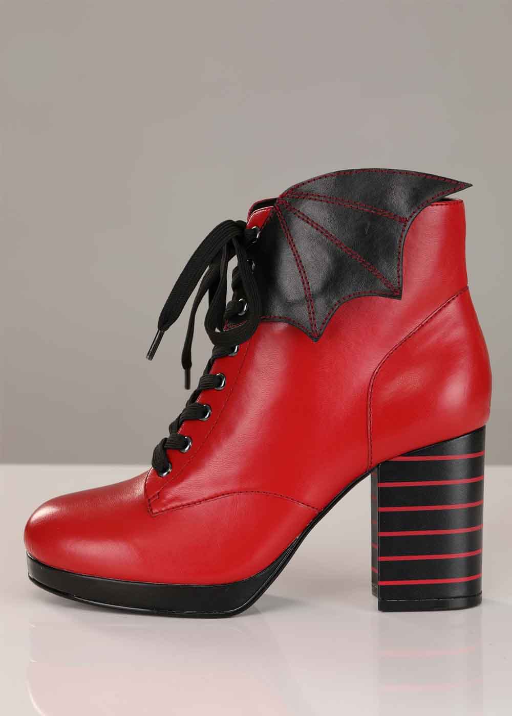 Красные сапоги на каблуке, это идеальный выбор для тех, кто ищет сочетание стиля, комфорта и неповторимого дизайна. Изготовленные из искусственной кожи с резиновой подошвой, они обеспечивают прочность и удобство. Молния вдоль внутренней стороны каждого сапога обеспечивает легкость в надевании и снятии. Декоративные шнурки спереди придают этим сапогам особый шарм, а каблук высотой 8 см и толщина платформы 2 см создают элегантный и уверенный контур. Мягкая внутренняя подошва и легкая текстурированная внешняя подошва обеспечивают комфорт при ходьбе. Особенностью этих сапог являются крылья летучей мыши из искусственной кожи, прикрепленные к внешней стороне каждого сапога, что придает им уникальный и неповторимый вид. Кроме того, логотип отеля Трансильвания вышит на верхней части язычка, добавляя загадочности и стиля.