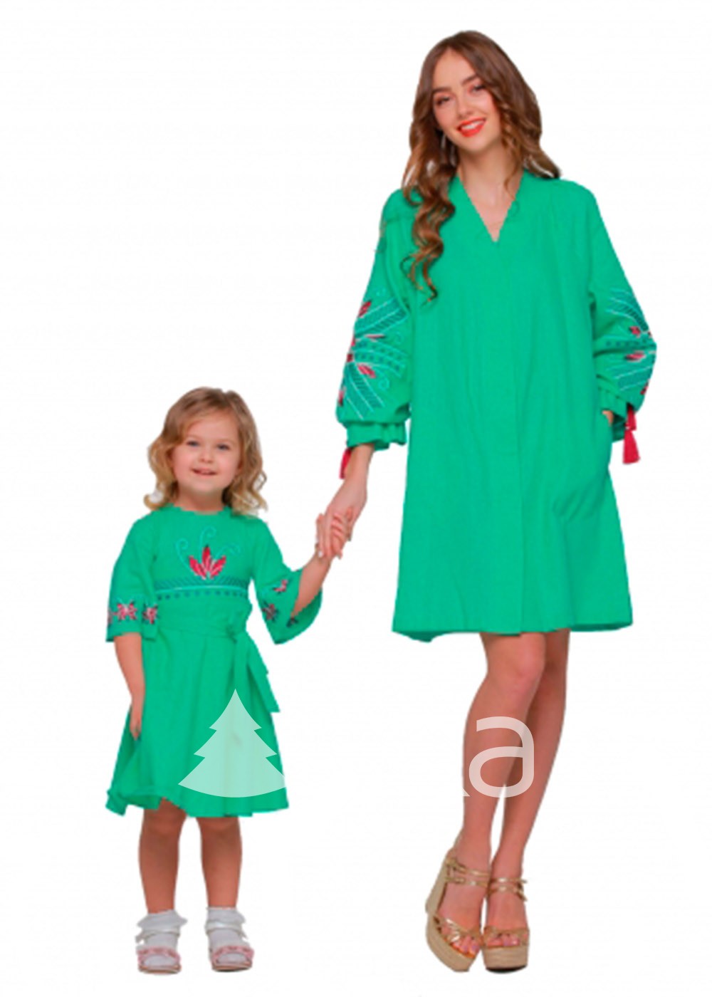 Вышитое платье изготовлено из натуральной ткани. Данная модель имеет свободный крой, короткие рукава регланы и среднюю длину - идеальное сочетание, чтобы девочка чувствовала себя комфортно. На спине есть потайная пуговица застежка. Необычный цвет платья - мятный - станет самым заметным на любом детском празднике. В комплекте идет тонкий поясок.