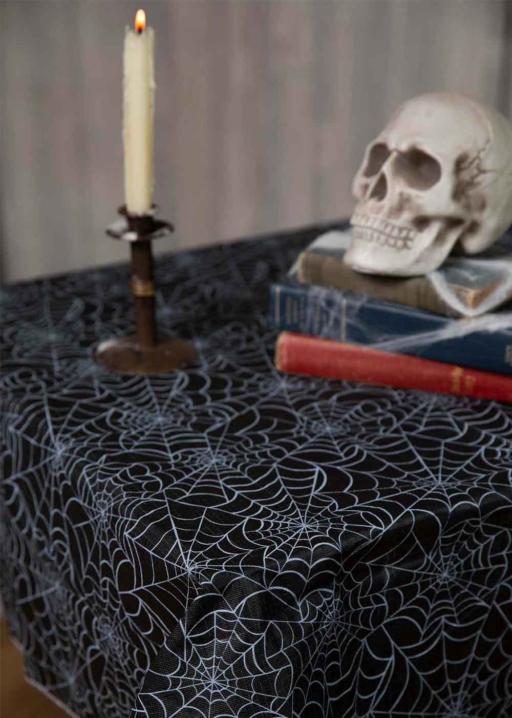 Кружевная скатерть с изображениями пауков и паутины добавит загадочности вашему Хэллоуинскому столу. С размерами 152 х 213 см, скатерть прекрасно подходит для столов различных форм и размеров. Каждый элемент дизайна внимательно проработан, чтобы создать атмосферу таинственности и ужаса.