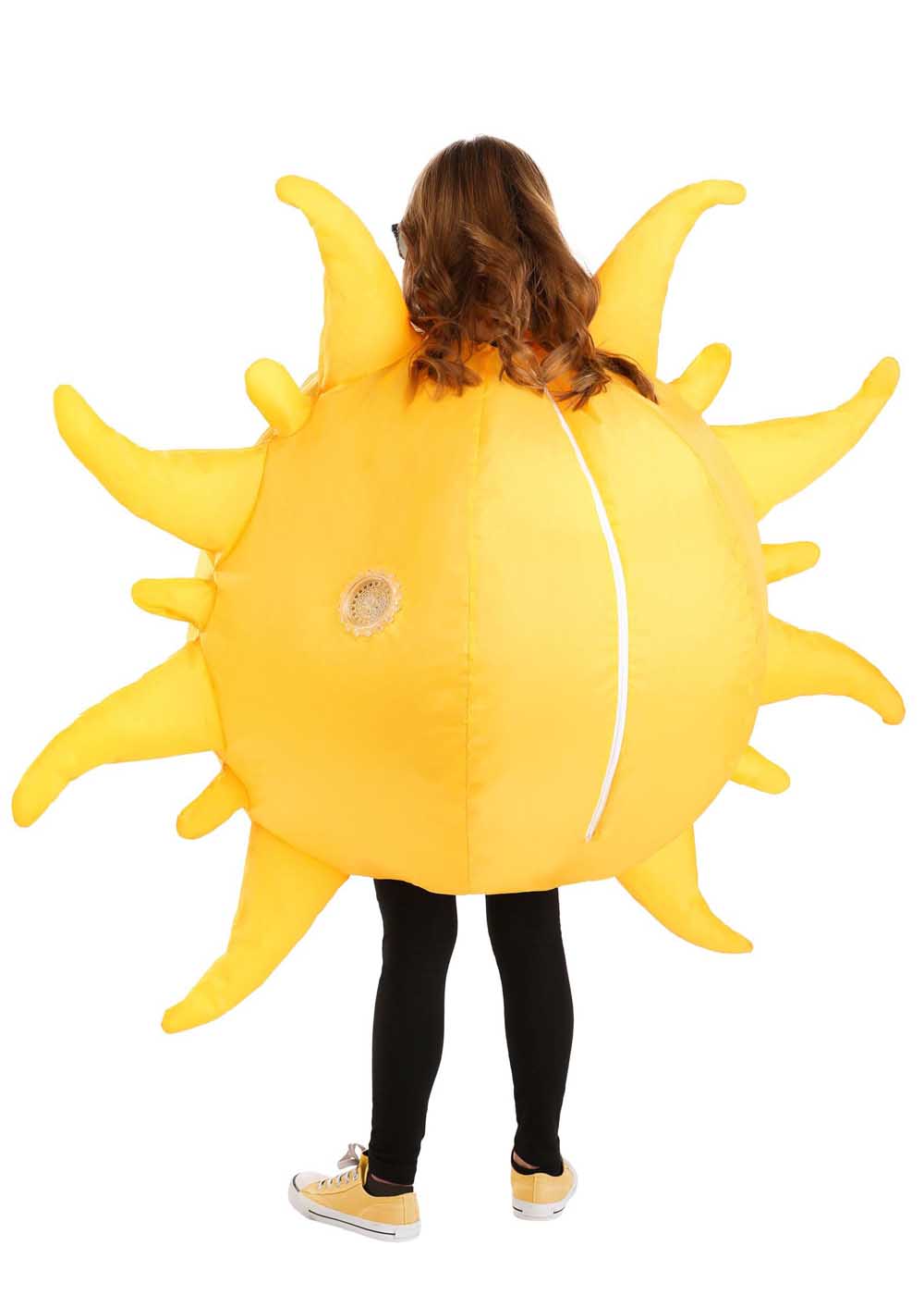 Солнце надувной костюм — идеальный выбор для ярких и уникальных мероприятий. Боди костюма застегивается на молнию по центру спины, обеспечивая легкость надевания и снятия. Резинки на шее, рукавах и штанинах поддерживают удобную посадку и предотвращают скольжение во время движения. Вентилятор, установленный сзади, поддерживает форму и надувает костюм, создавая впечатляющий образ. Для работы требуется 4 батарейки (не включены), которые легко закрепить с помощью аккумуляторной батареи с зажимом для крепления к одежде под комбинезоном.