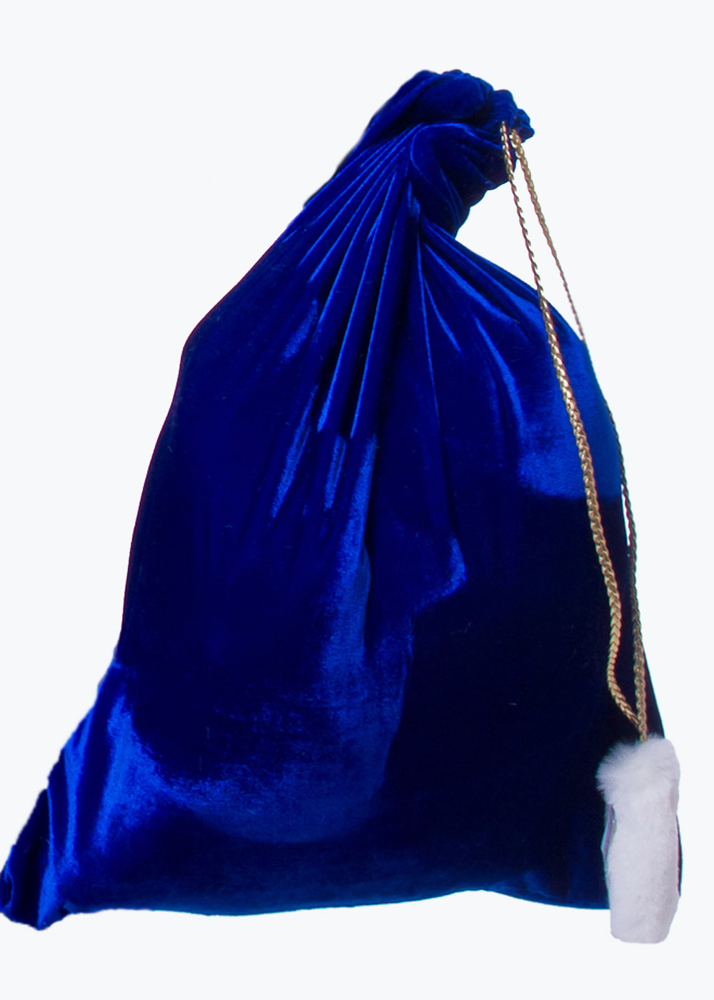 Удобный и практичный мешок для подарков пошит из ярко – синего велюра и завязывается надежным шнурком с меховой кисточкой на конце. Двойная строчка увеличивает прочность мешка, вы сможете поместить в нем нужное количество подарков. Подарите детям и взрослым настоящий праздник! Вы будете настоящим волшебником, который дарит окружающим хорошее настроение и море улыбок.