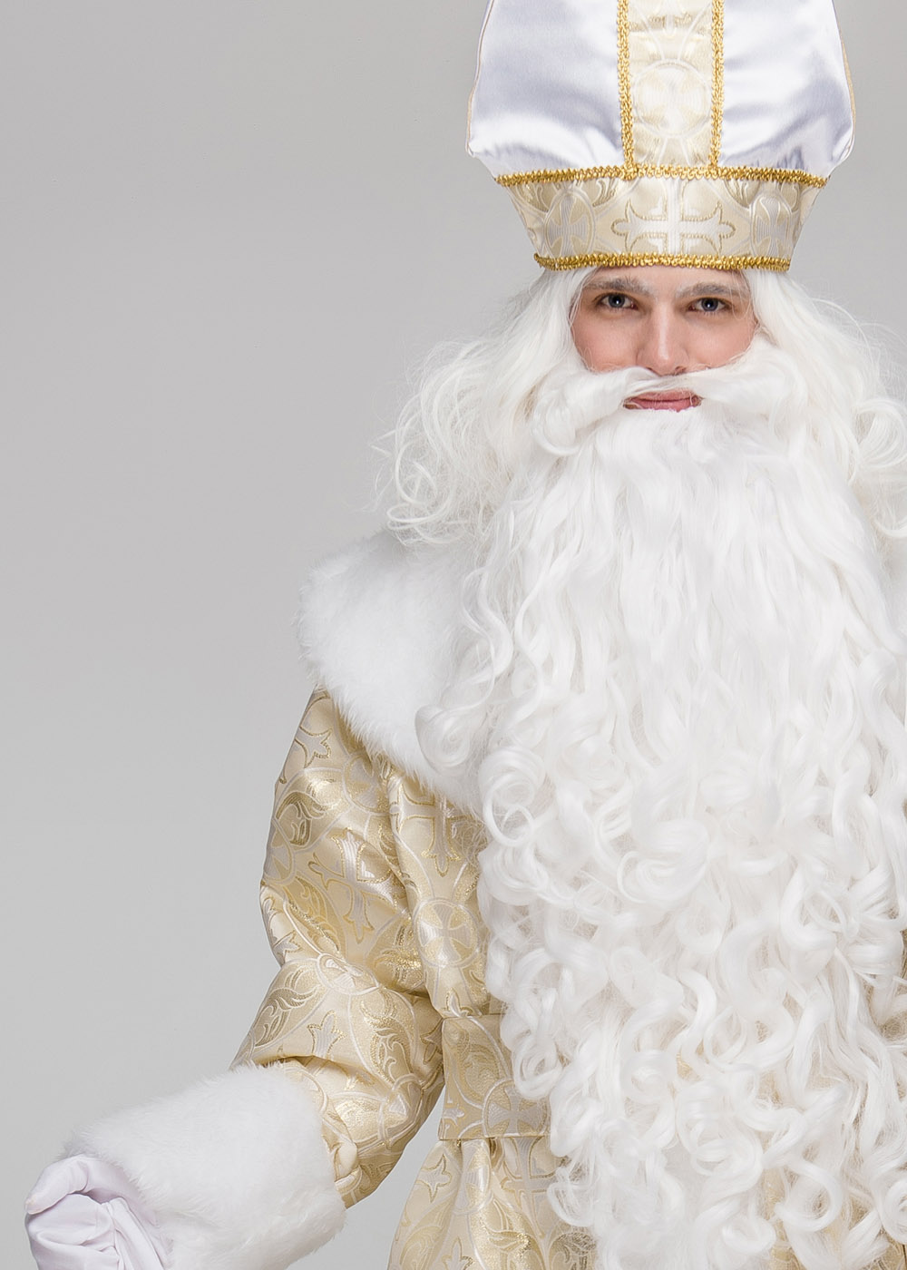 Костюм Святого Николая Спасский золотой - это источник величия и праздничного волшебства. Золотистый оттенок костюма придает ему особый блеск и изысканность, делая образ Святого Николая поистине величественным. Этот костюм Николая для аниматора поможет создать атмосферу праздника и радости, наполнив каждого гостя теплом и весельем.