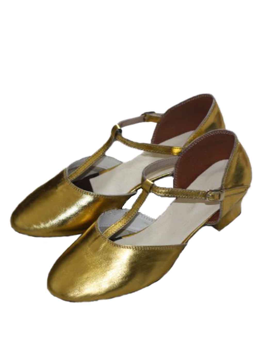 Туфли для девочки золотые - сценические танцевальные туфли для народных коллективов. Выполнены из натуральной кожи золотого цвета. Высота каблука 3.5 см. Доступные размеры: от 17 до 26см.