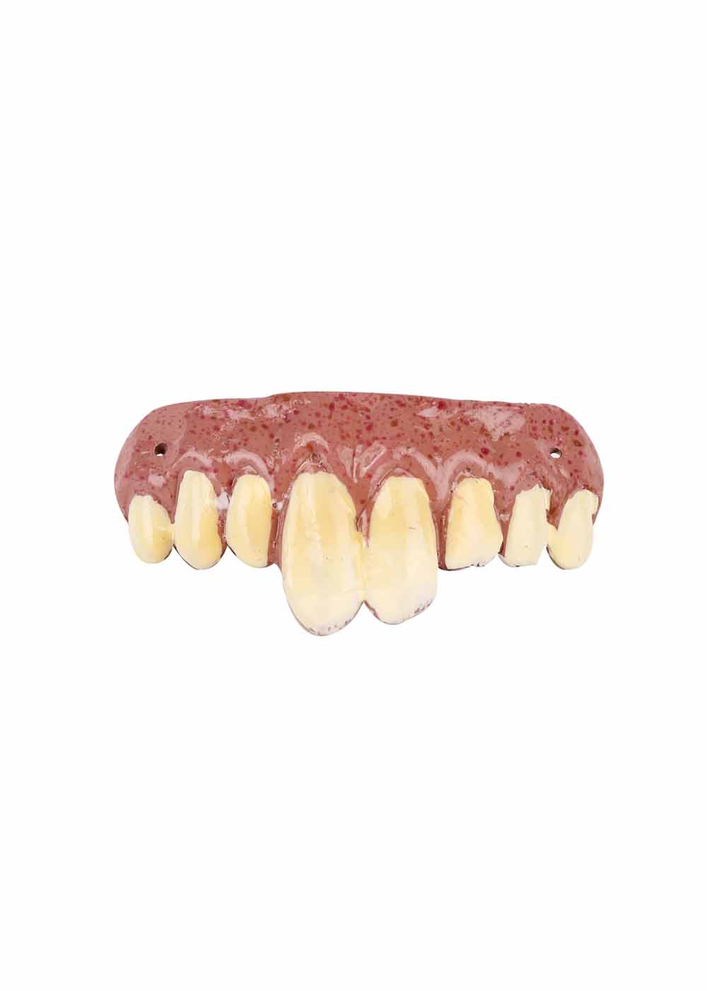 Верхні зуби – аксесуар для створення унікального образу чи костюма. Виготовлені із спеціального м'якого та гнучкого пластику, вони легко надягають на природні зуби завдяки термоформованим пластиковим гранулам, що забезпечує зручну та стабільну посадку. Ці зуби мають страшний вигляд, що робить їх чудовим вибором для Хеллоуїна.
