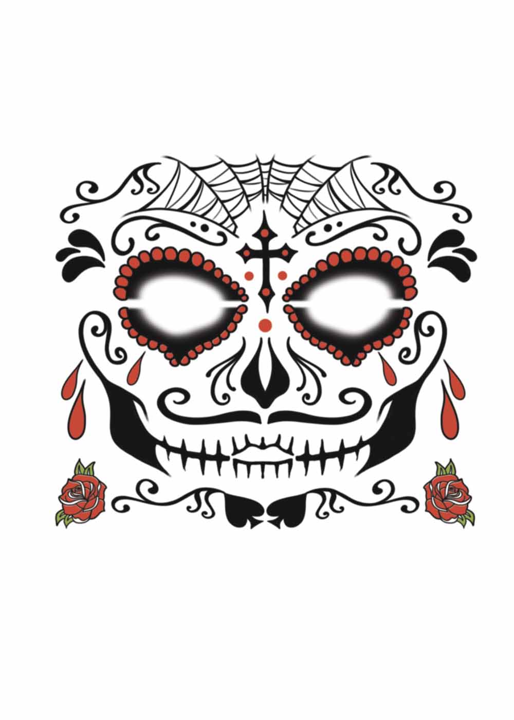 Татуювання Мертвец, це жахливий образ, який легко створити за допомогою цього комплекту. Процес нанесення простий: достатньо промокнути татуювання вологою ганчіркою. Щоб видалити її, використовуйте дитячу олію чи крем. Це татуювання створює ефект запалих вилиць, червоних сліз і моторошного павутиння на лобі, допомагаючи вам втілити образ жахливого мерця.