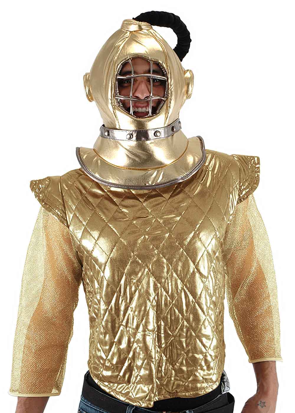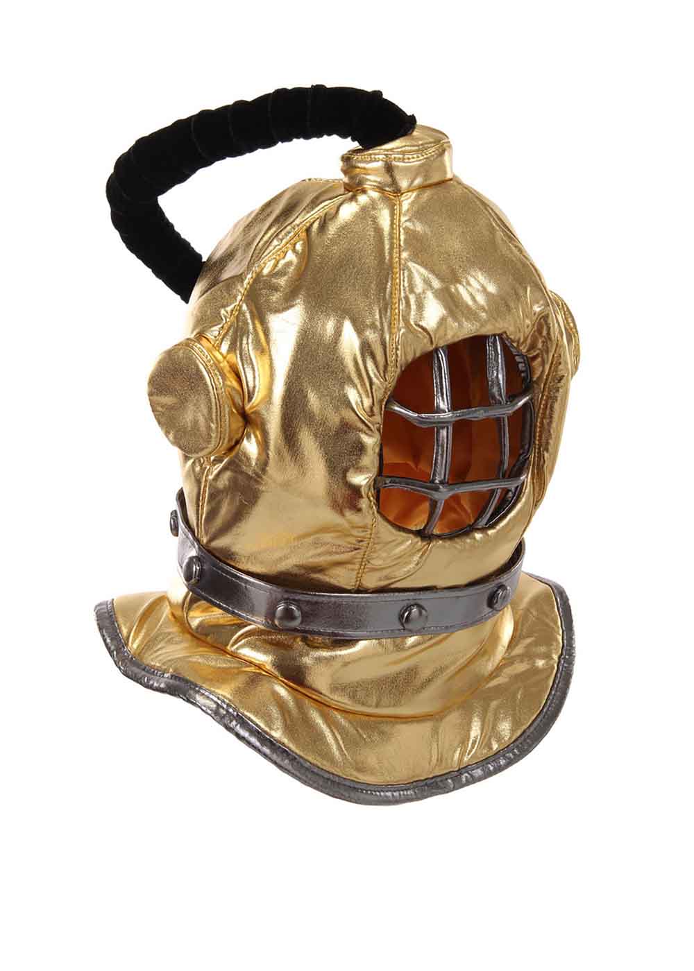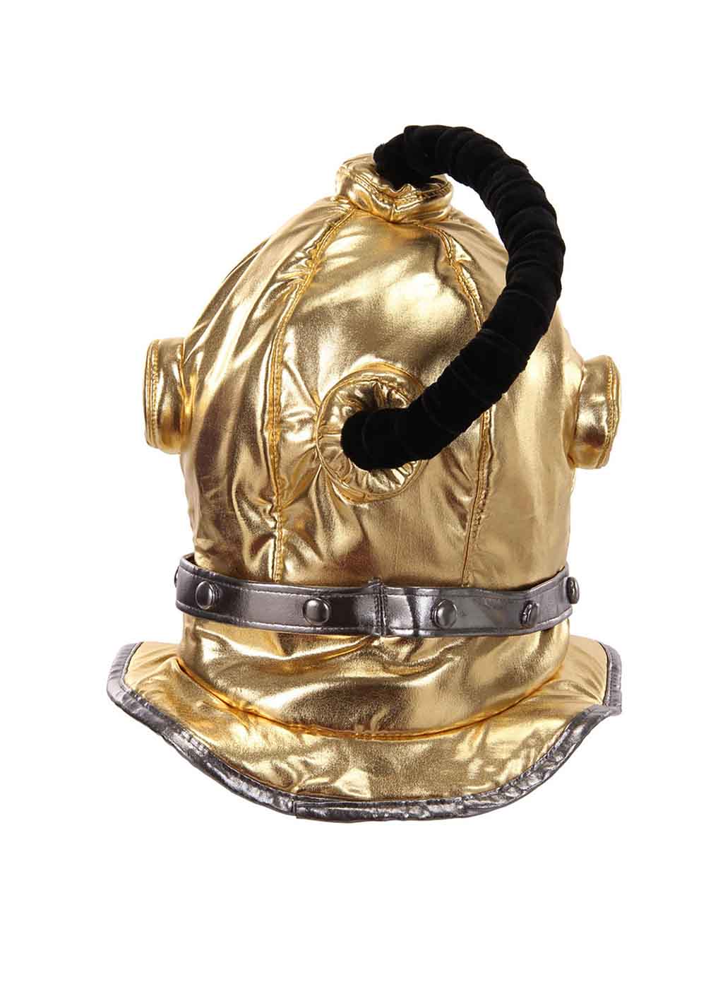 Шолом Водолаза у золотистому кольорі, це не тільки захист, а й стильний аксесуар, який додасть блиску вашому образу під водою. Виготовлений із блискучої тканини, шолом обіцяє привернути увагу під водою. Шолом має регульований за розміром ремінь усередині із застібкою-липучкою, що забезпечує комфортну посадку та захист. Потайна кишеня всередині додає зручності для зберігання дрібних предметів. Наповнювач із пінополіуретану робить цей шолом легким та зручним для носіння, а також допомагає йому зберігати форму та забезпечувати надійний захист. Шолом Водолаза підходить для головного отвору до 66 см і має висоту 33 см, що робить його універсальним та придатним для більшості розмірів голів.