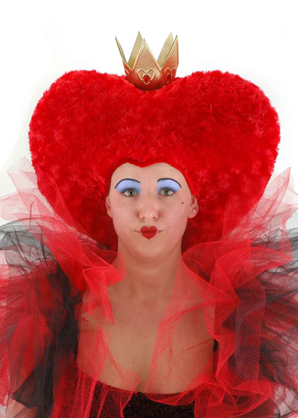 Перука Королеви Черв'яків з фільму "Аліса в Країні Чудес", виготовлена на спіненій основі, забезпечуючи комфорт при носінні. Перука прикрашена короною, яка прикрашена золотом, сердечками та червоними коштовностями. Усередині шапочки захований гачок і петля, що забезпечують зручний доступ до перуки для більш повного та природного вигляду. Крім того, внутрішня потайна кишеня із застібкою-липучкою додатково забезпечує зручність.