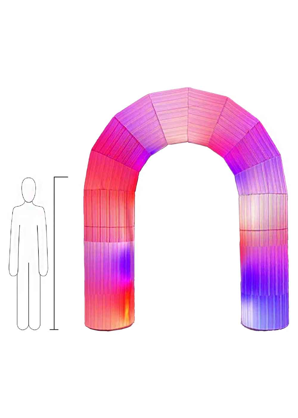 LED надувна арка — стильний та яскравий додаток для заходу. Розмір арки – 3 x 2,5 метра. Арка оснащена яскравим світлодіодним підсвічуванням, яке створює чарівне свічення і робить арку видимою навіть у темний час доби. Світлодіодні вогні додають святкову атмосферу і роблять арку придатною для різних подій, будь то вечірки, корпоративи чи фестивалі. Виготовлена із міцної тканини оксфорд. Комплектація включає насос, міцні мотузки для фіксації та зручний пакувальний мішок для легкого транспортування та зберігання.