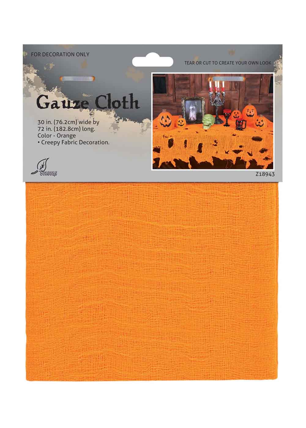 Помаранчева марлева скатертина - чудове доповнення до вашого декору на Хелловін. Довжина 183 см та ширина 76 см забезпечать достатньо місця для створення загадкової атмосфери. Зроблена з флуоресцентного матеріалу, що світиться в чорному світлі, надаючи вашому столу особливий шарм. Аксесуар можна використовувати як є, щоб додати яскравий акцент до вашого декору, або розрізати і порвати, що додасть моторошного, рваного вигляду, який ідеально підійде для вечірки Хеллоуїна.