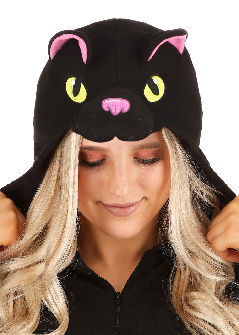 Перетворіть себе в стильного та загадкового чорного кота з цим Кігурумі для дорослих! Костюм з м'якого флісу з блискавкою по центру спереду забезпечує легкість надягання та зняття. Пришитий капюшон з вишитими рисами обличчя та м'якими вухами додає образу автентичності та шарму. Набитий хвіст прикріплений до спини костюма, створюючи ефектний та стильний вигляд. Ребристі манжети на зап'ястях і ногах зберігають тепло і надають костюму завершеного вигляду.