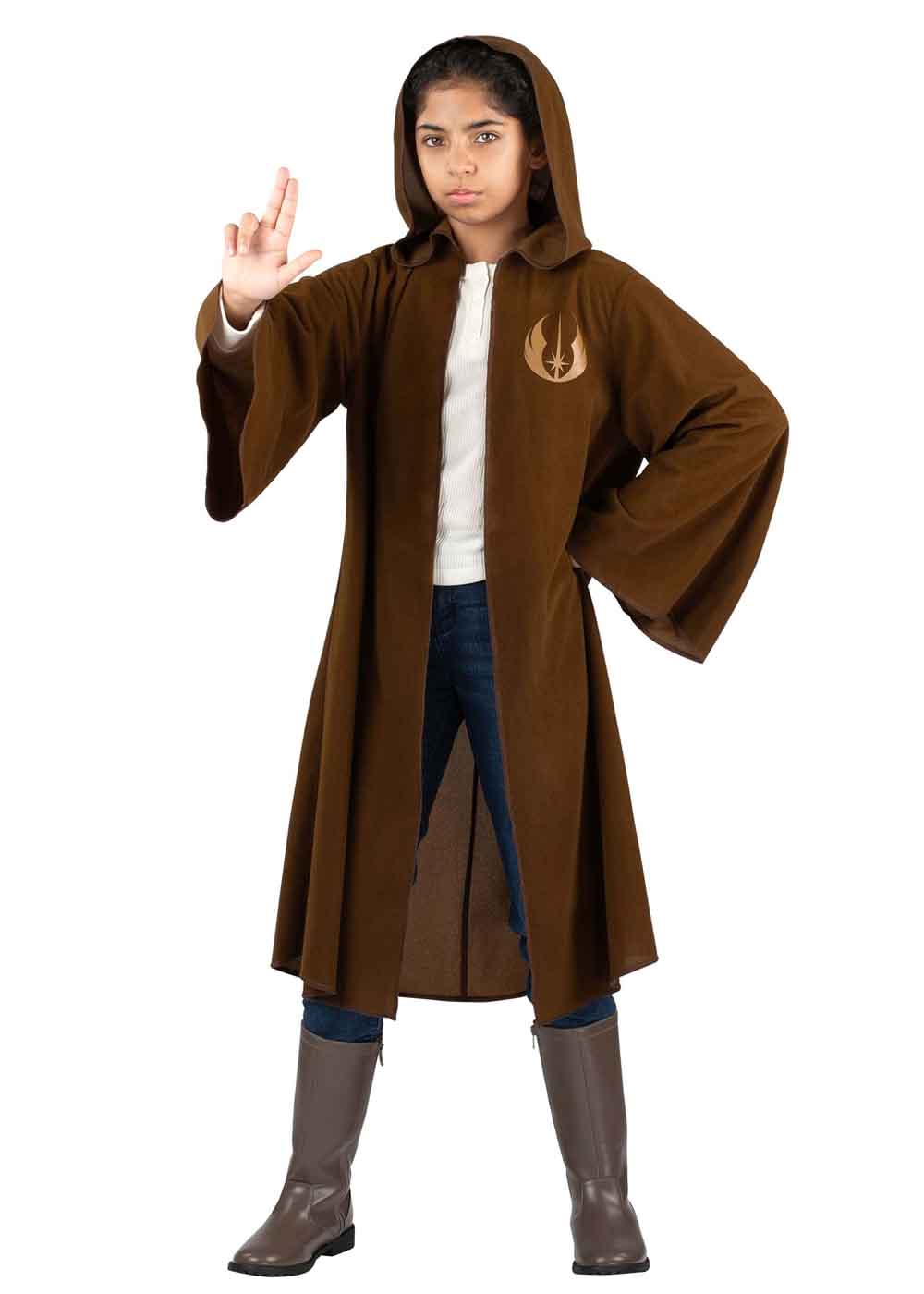 Дитячий плащ Джедая - чудове вбрання, яке привносить в образ лицаря зоряних воєн. Виготовлений із трикотажної фланелевої тканини з поліестеру. Капюшон захищає голову, а широкі розкльошені рукави надають образу додаткової таємничості та стилю. Грудна клітина плаща складає до 97 сантиметрів, а довжина рукава - 51 сантиметр, забезпечуючи хорошу посадку та комфорт вашій дитині. Довжина - 89 сантиметрів, що робить його зручним та практичним у використанні.