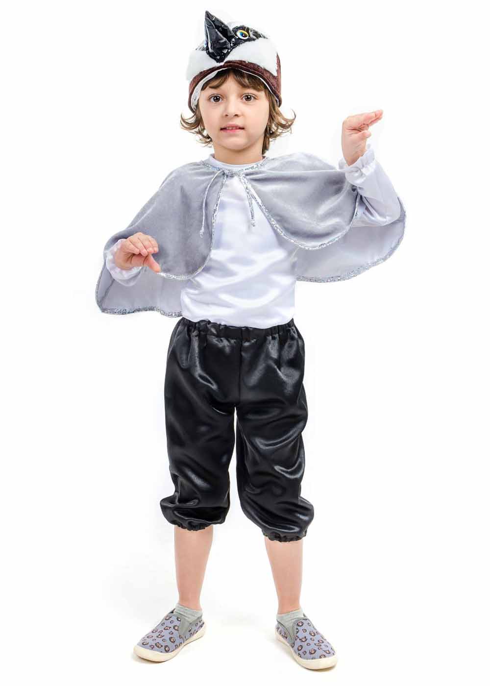 Костюм Горобця для хлопчика є яскравим та кумедним вбранням, ідеально підходящим для святкових заходів та виступів. У комплект входить накидка, що надає образу завершеності та оригінальності. Шапка з елементами горобиного пір'я додає грайливості, а кофта та шорти забезпечують комфорт і свободу рухів. Цей костюм дозволить вашому хлопчику відчути себе справжнім горобцем, привертаючи увагу своєю яскравістю та унікальністю.