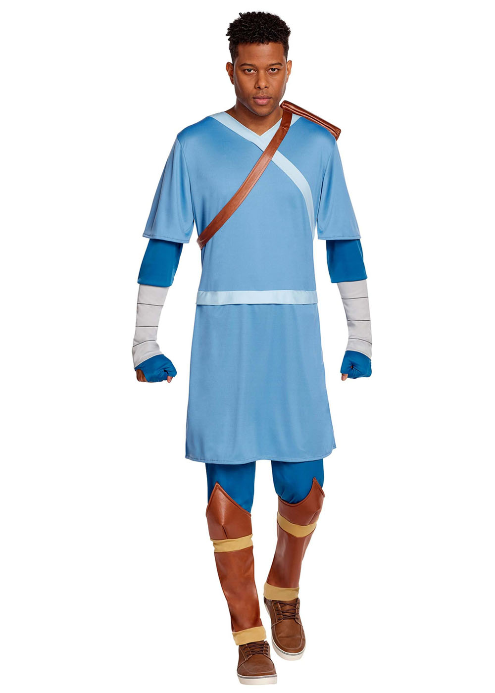 Станьте Соккой з всесвіту 'Аватар: Легенда про Аанг' у цьому костюмі! Костюм виконаний з поліестерової тканини з пінополіуретановою піною. Комбінезон із задньою блискавкою стилізований під обмотану туніку поверх легінсів та черевиків. Пінополіуретанові накладки на черевиках пришиті до нижніх штанин. Шлейка на грудях закривається на застібку-липучку.
