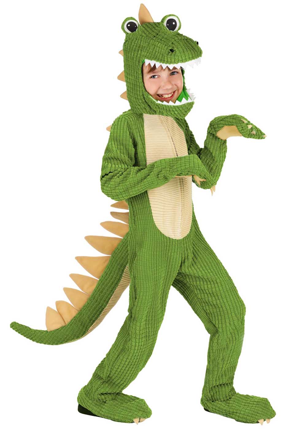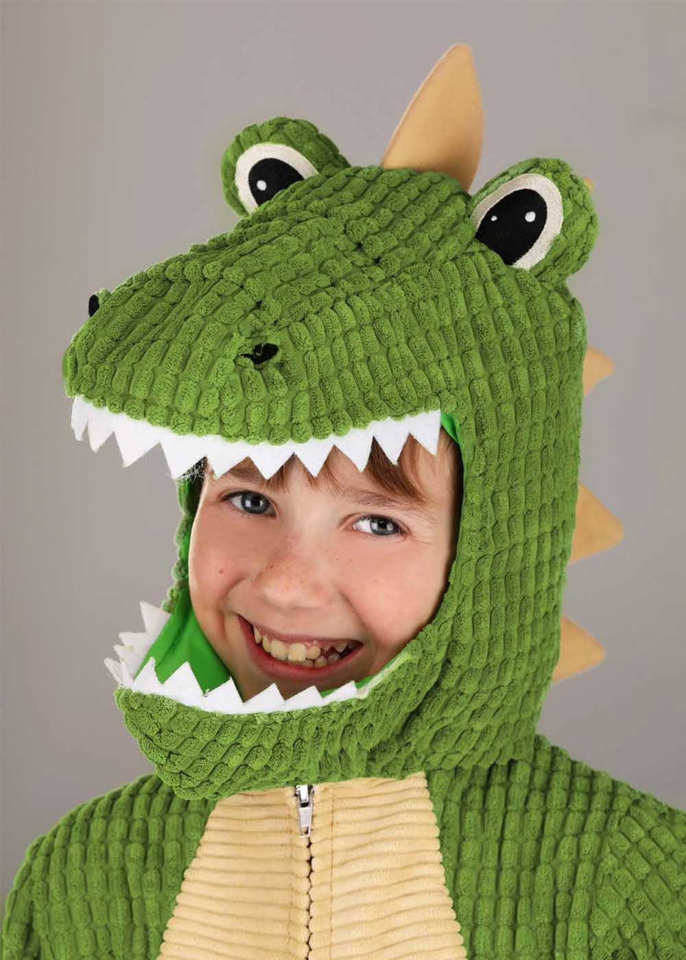 Плюшевий Динозавр костюм - ідеальний вибір для веселих ігор. Комбінезон із прикріпленими рукавицями забезпечить комфорт та свободу рухів. Милий кремовий животик спереду і хвіст із кремовими шипами ззаду додають грайливості. Блискавка спереду полегшує вдягання. Капюшон з мультяшною головою динозавра, великими очима та кремовими шипами робить костюм ще більш кумедним. Ряд зубів у роті додає реалістичності. Зелені накладки на ноги завершують образ.