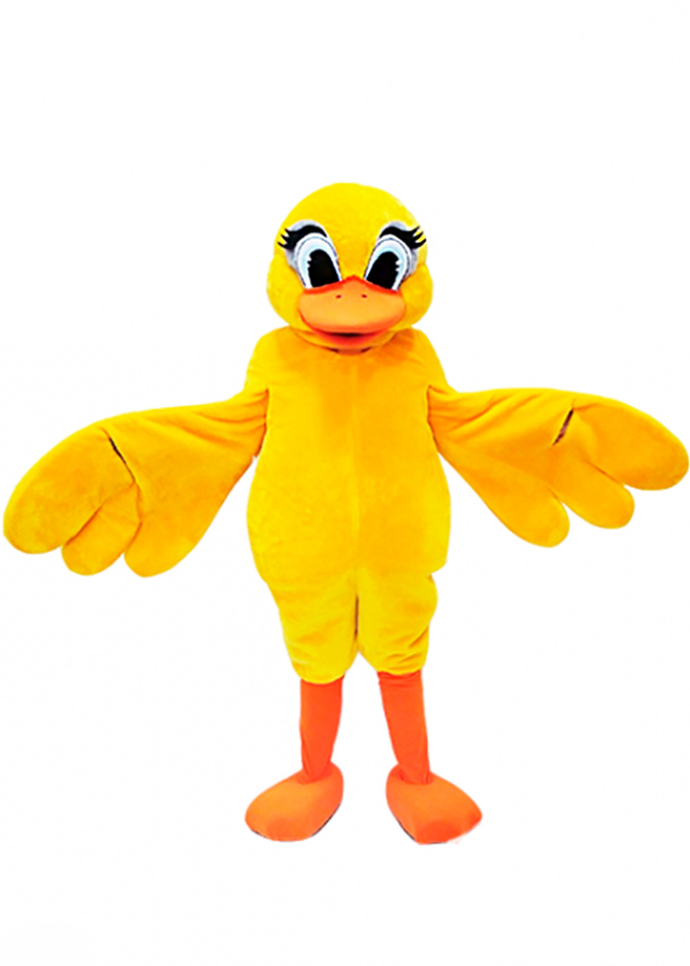 Ростовий костюм Каченя - яскравий образ. Голова костюма виконана на поролоновій основі та обтягнута м'яким флісом для комфорту виконавця. Оглядова зона в області очей виконана з сітчастого матеріалу, забезпечуючи хорошу видимість. Комплектація костюма включає рукавички та взуття з гумовою підошвою для зручності та безпеки під час виступів та розваг.